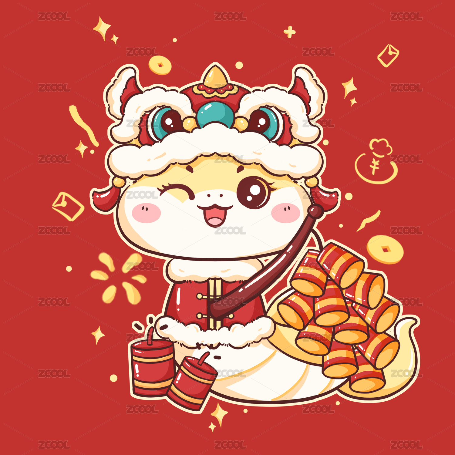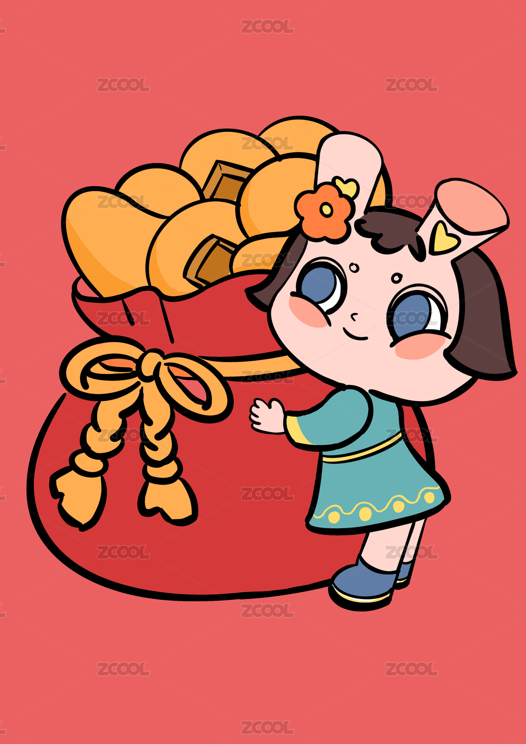 红色新年喜庆可爱福娃拿着灯笼 拷贝
