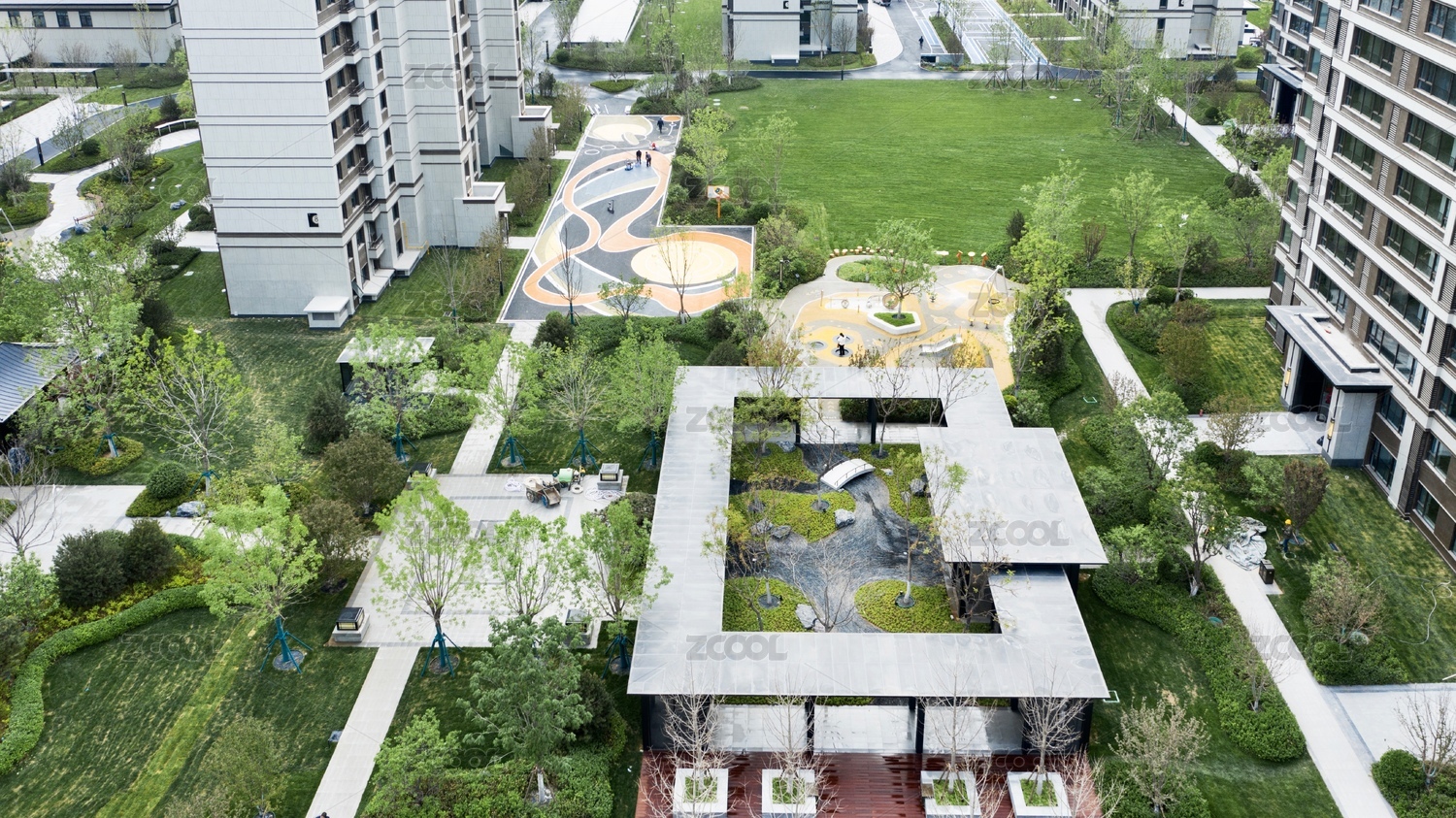 城市,小区,社区,高层,楼房,绿化,植物,道路,景观,商品房