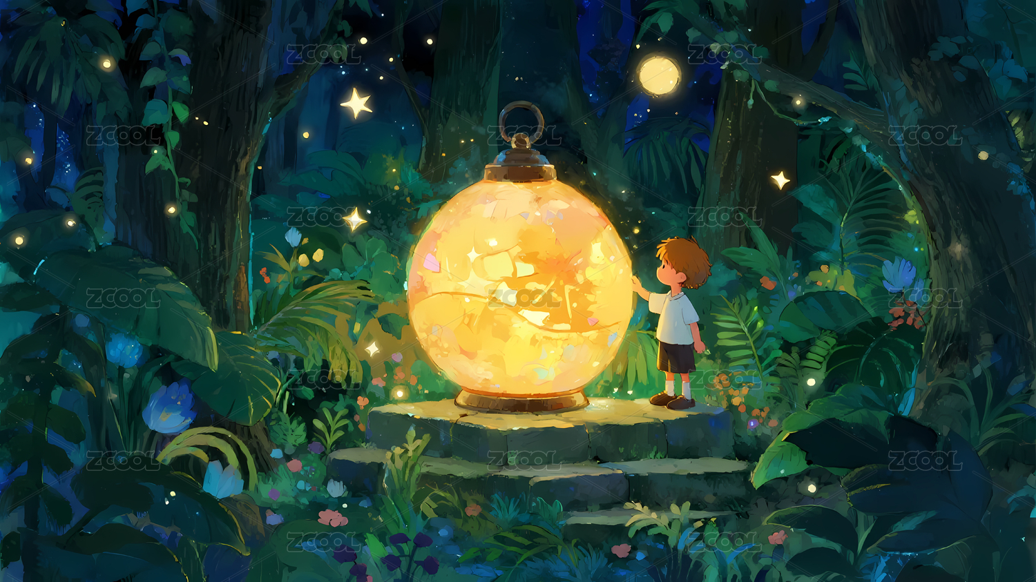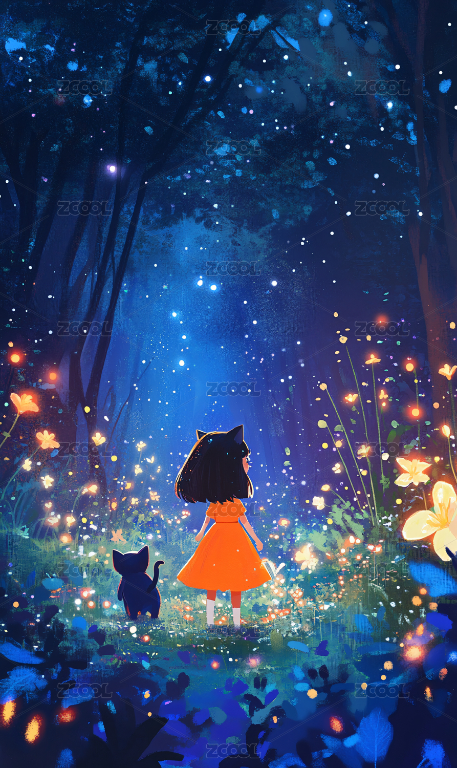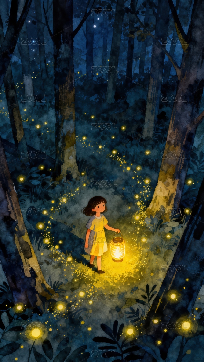 HEYYTGF2020,古风,插图,儿童插画,萤火虫,祈祷,许愿,夜晚,光亮,树林