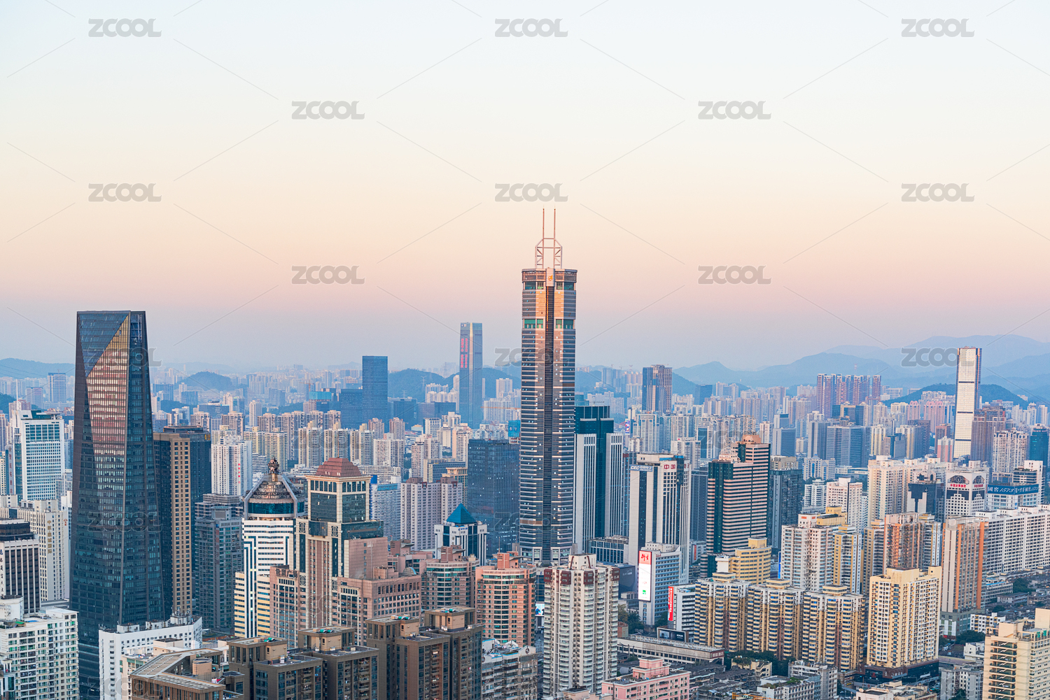 中国深圳市中心城市天际线高楼大厦全景风光,京基大厦和地王大厦
