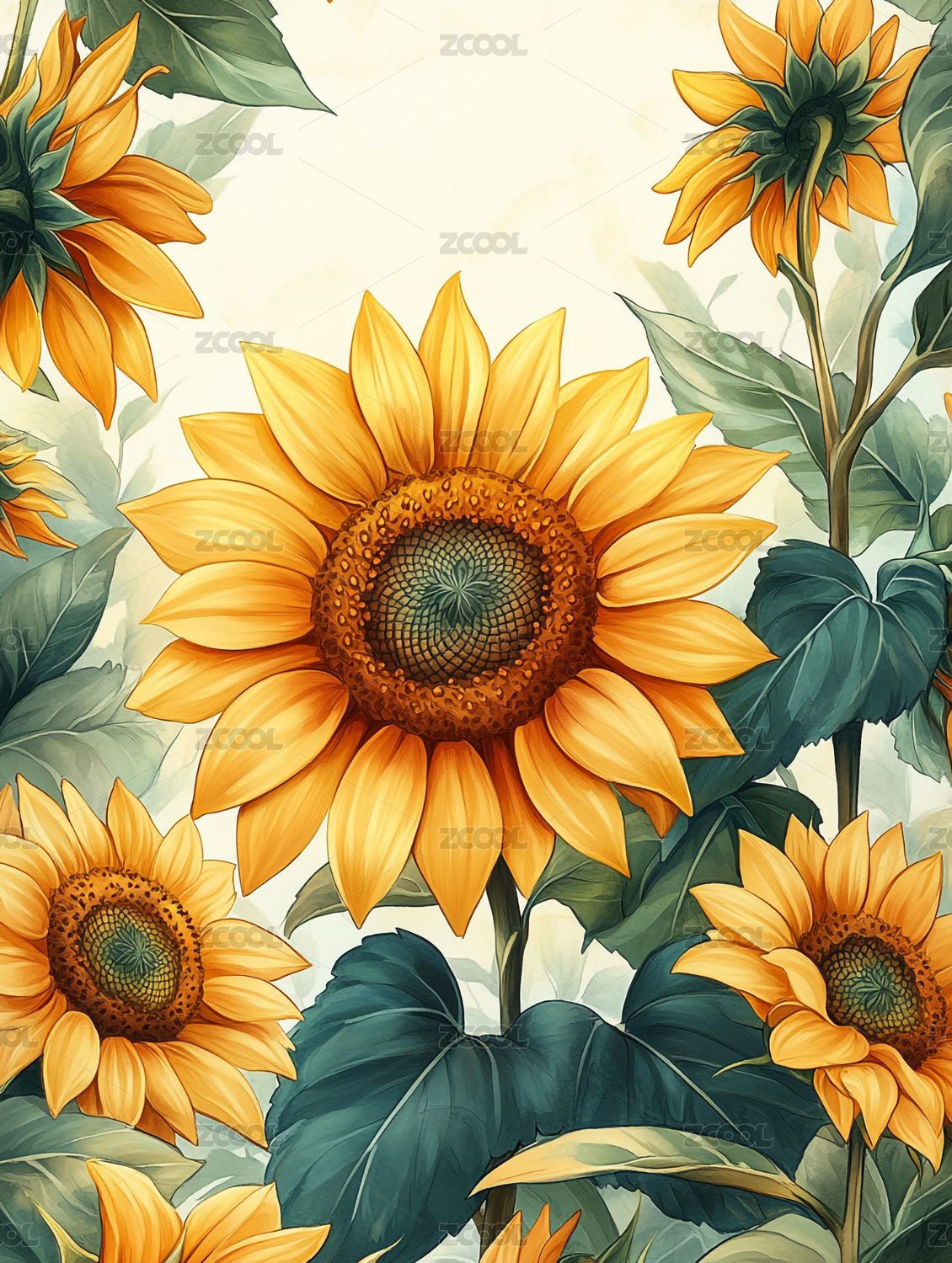 复古向日葵装饰背景板