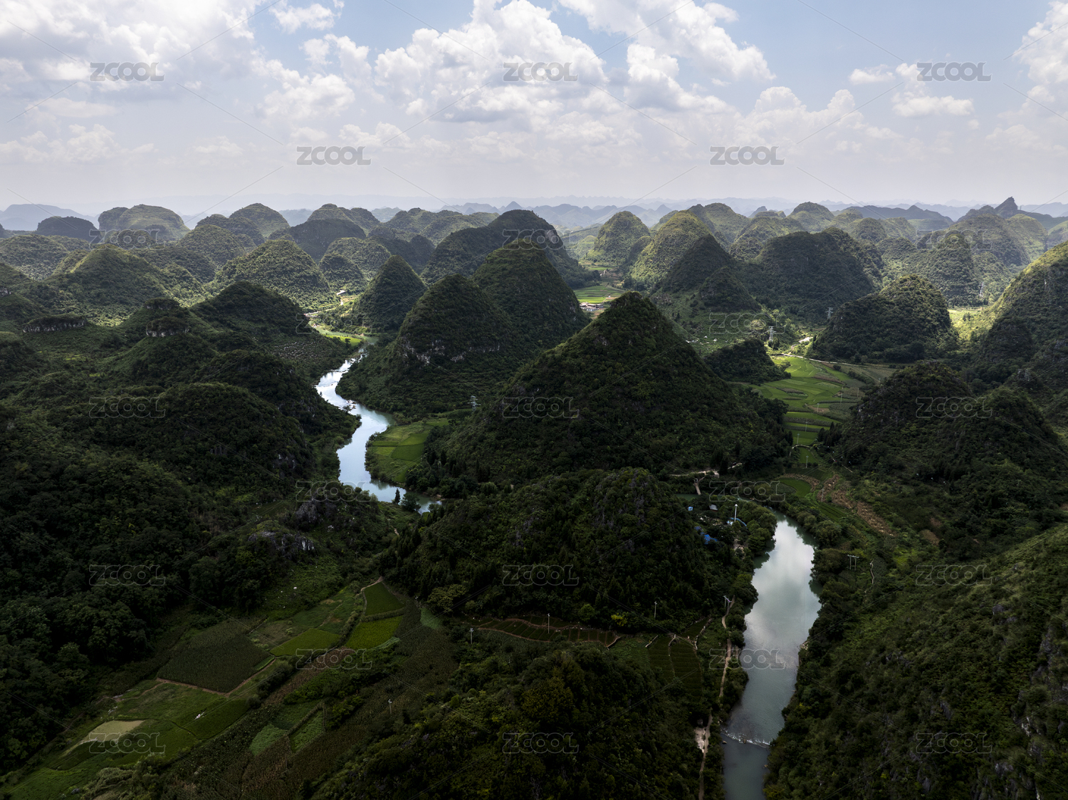 蓝天白云下的桂林喀斯特地貌