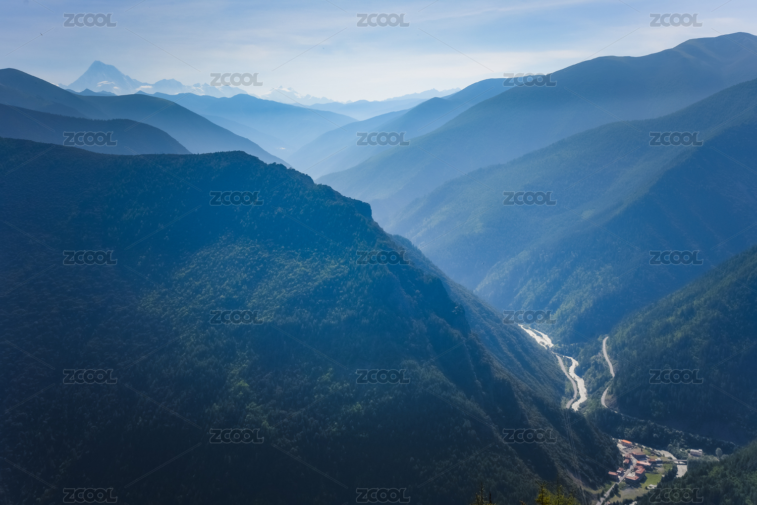 素材,背景,高山,沟壑,高原,川西高原,晨雾,缭绕,民居,俯拍