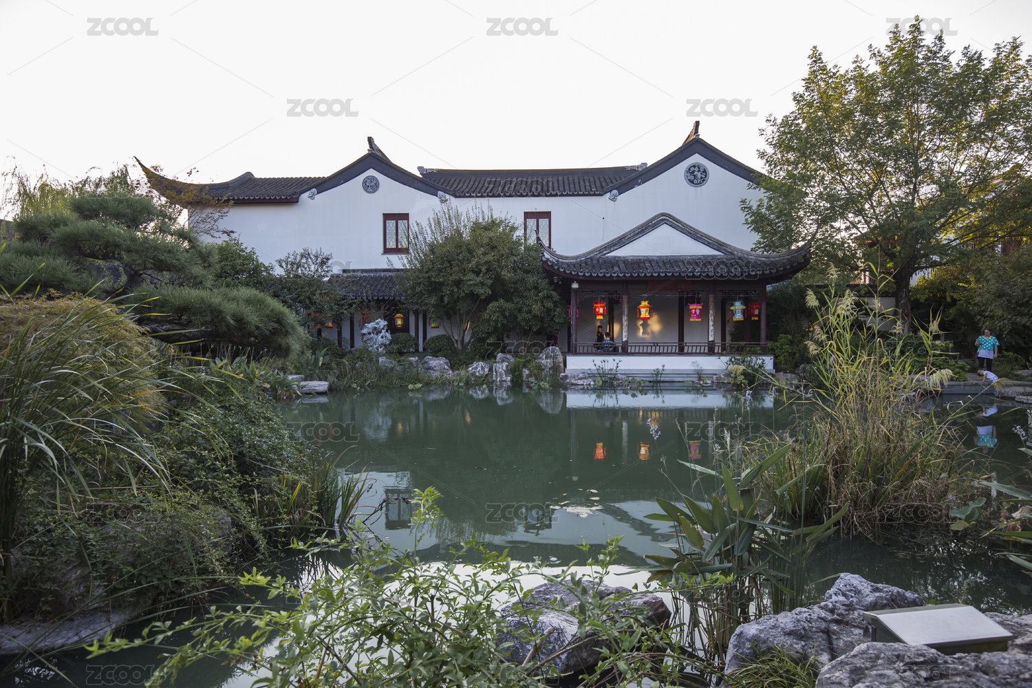 苏州,斜塘老街,夜景,园林,古建筑,亭子,房屋,河流,古镇,古街