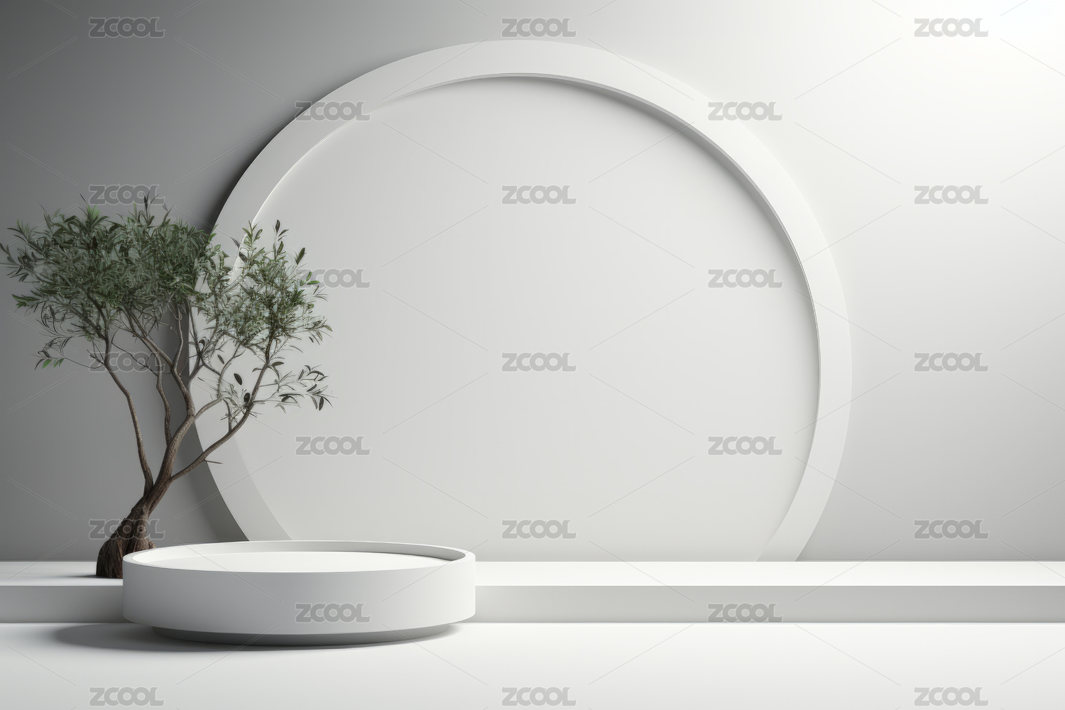 极简,舞台,设计,白色,绿色,圆形,形状,松树,浅蓝色,背景