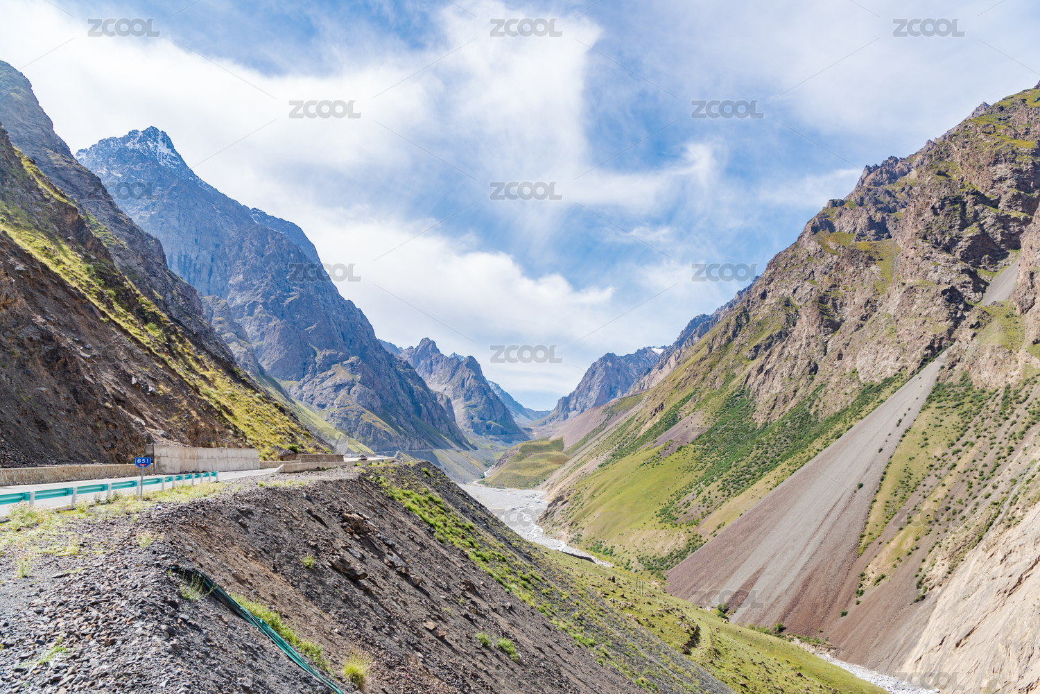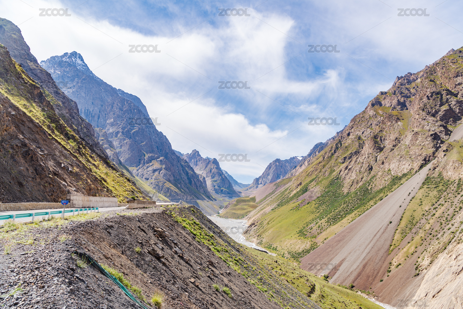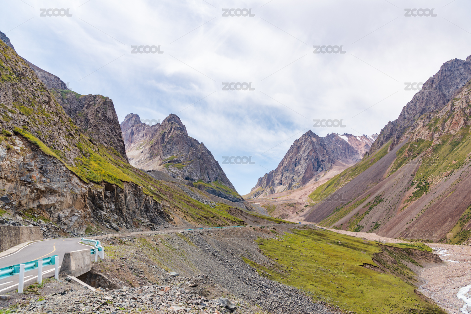 雪山,道路,独库公路,自然地理,G217国道,蓝天,白云,天空,晴朗,壮观