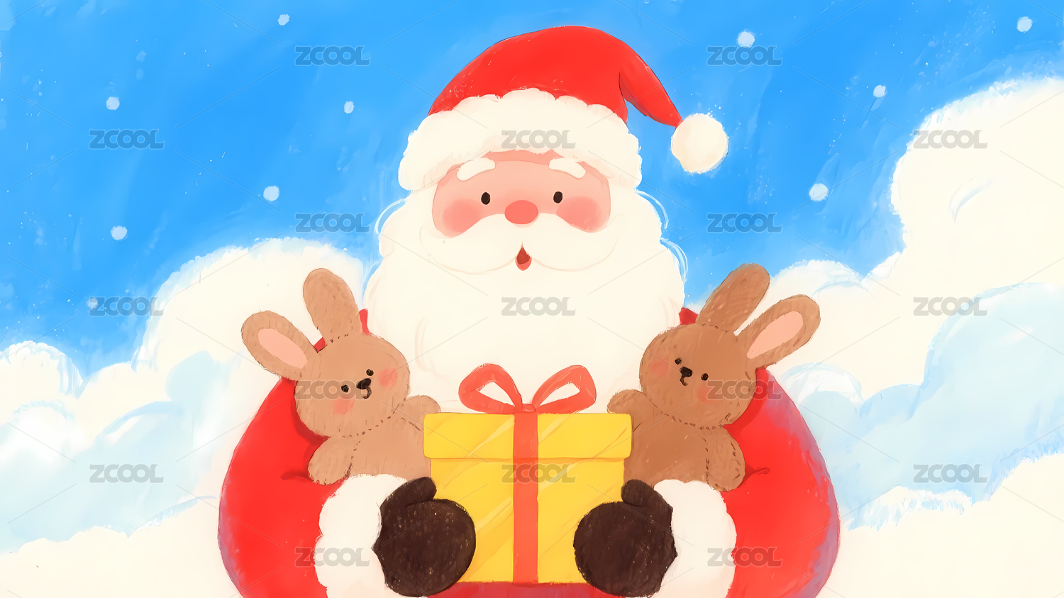 圣诞老人抱兔与雪花
