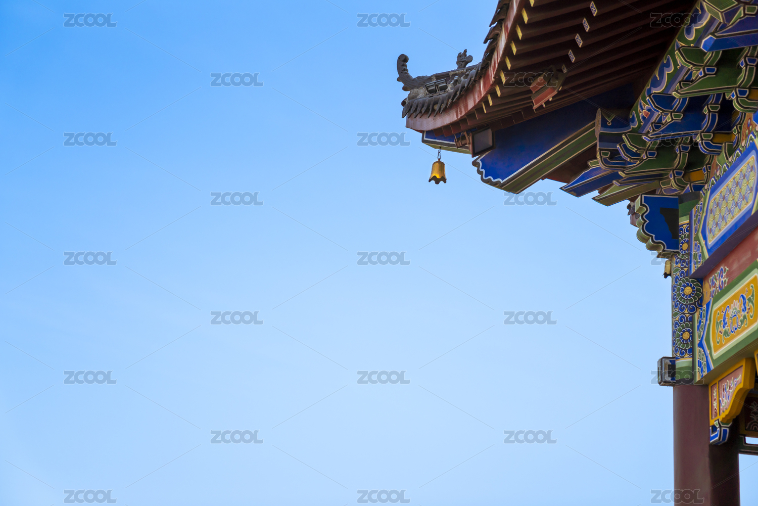 蓝天下的北京中山公园宰牲亭屋顶房檐特写