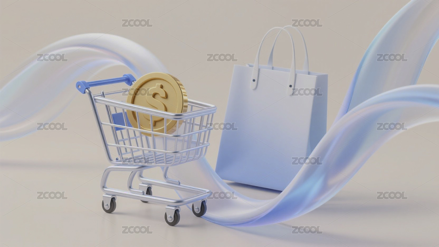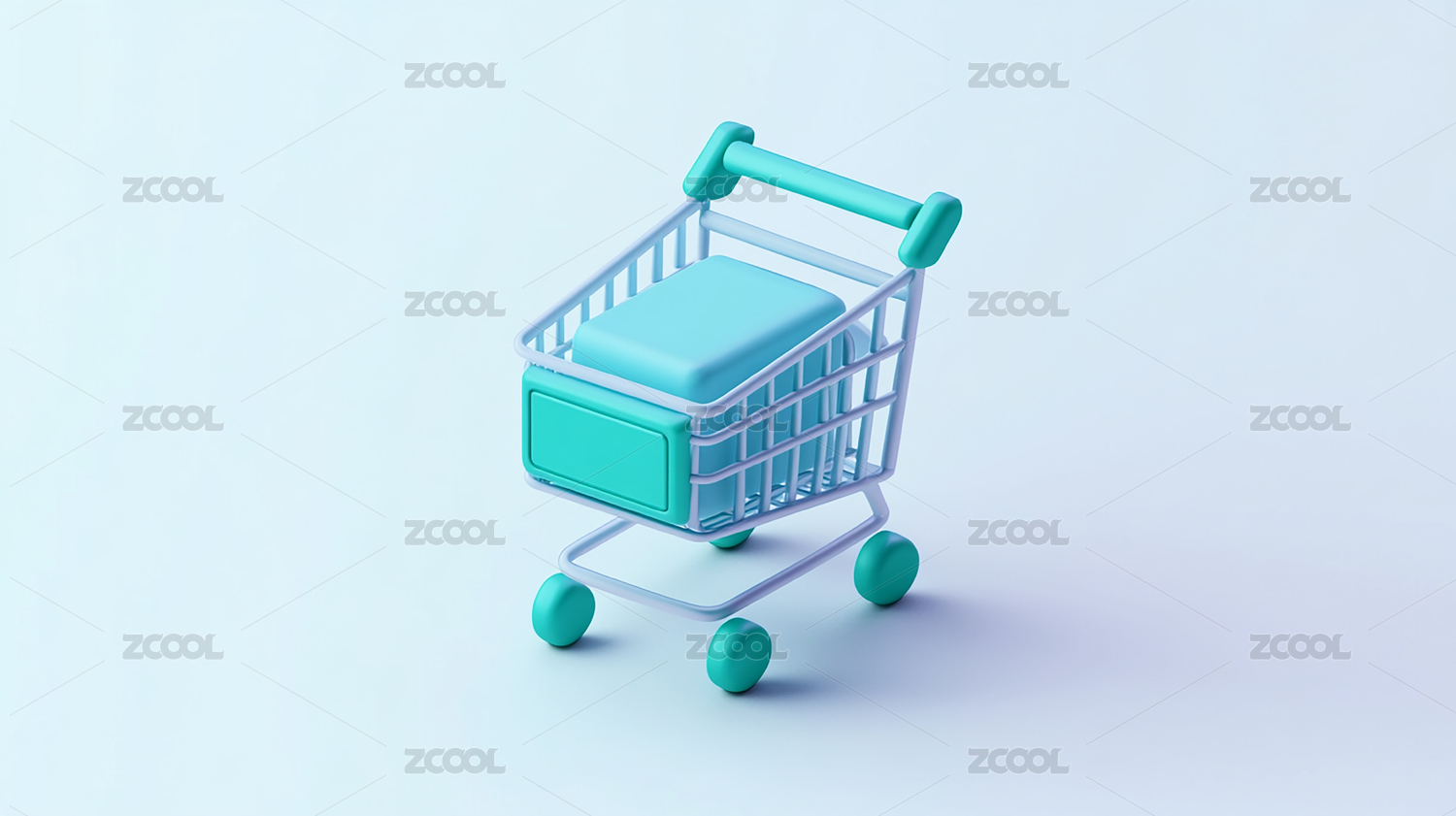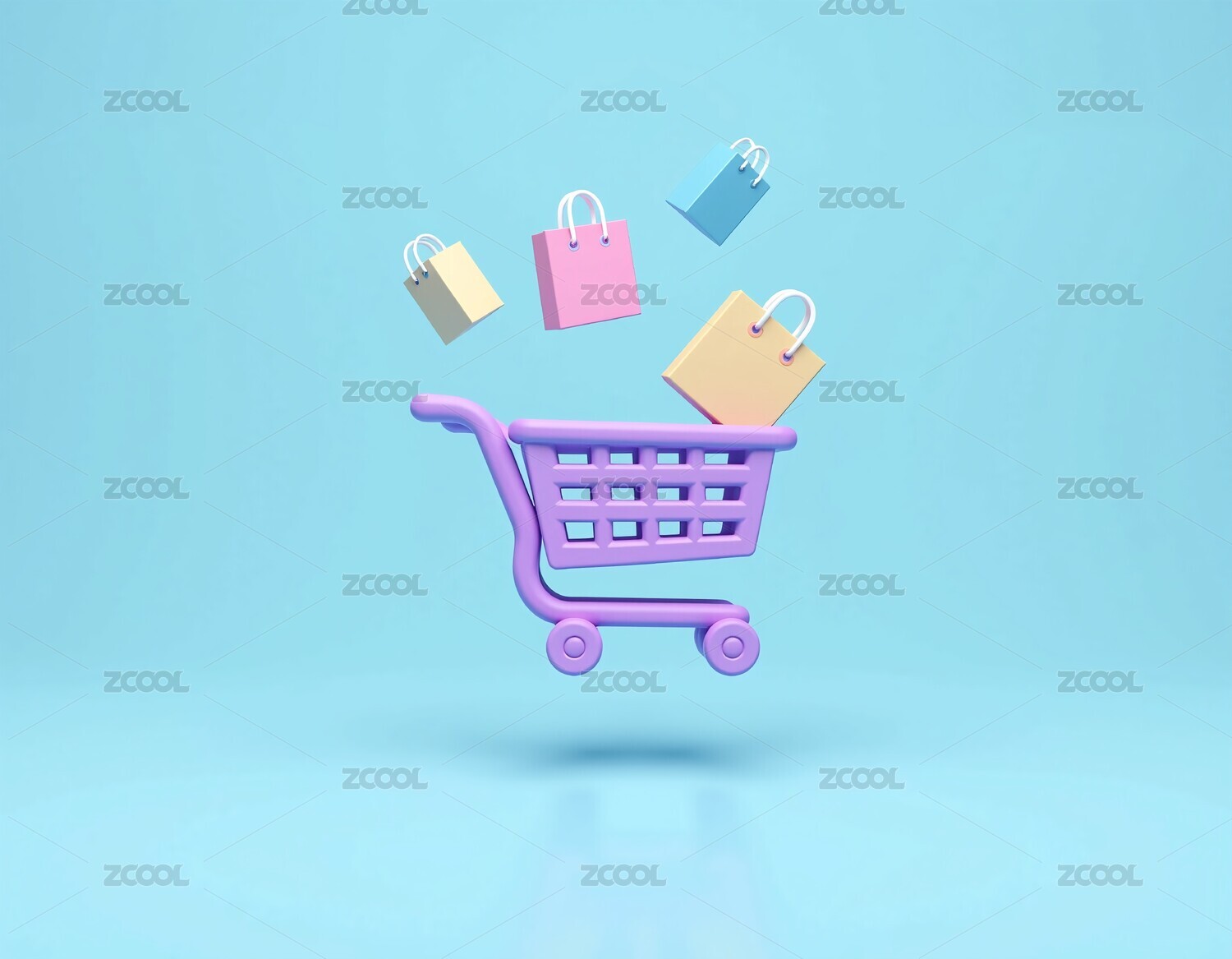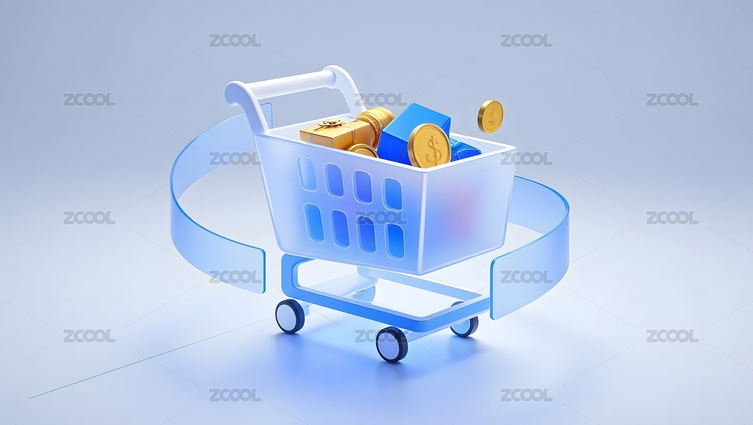 三维卡通购物车购物主题3D渲染