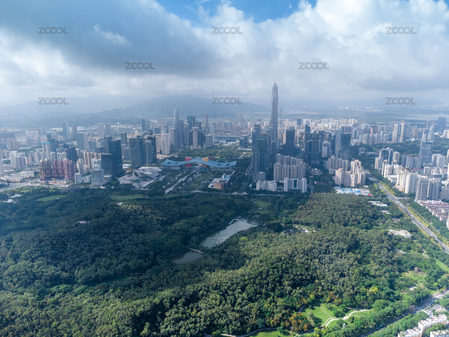 中国深圳市城市风光梧桐山下的深圳白天风景