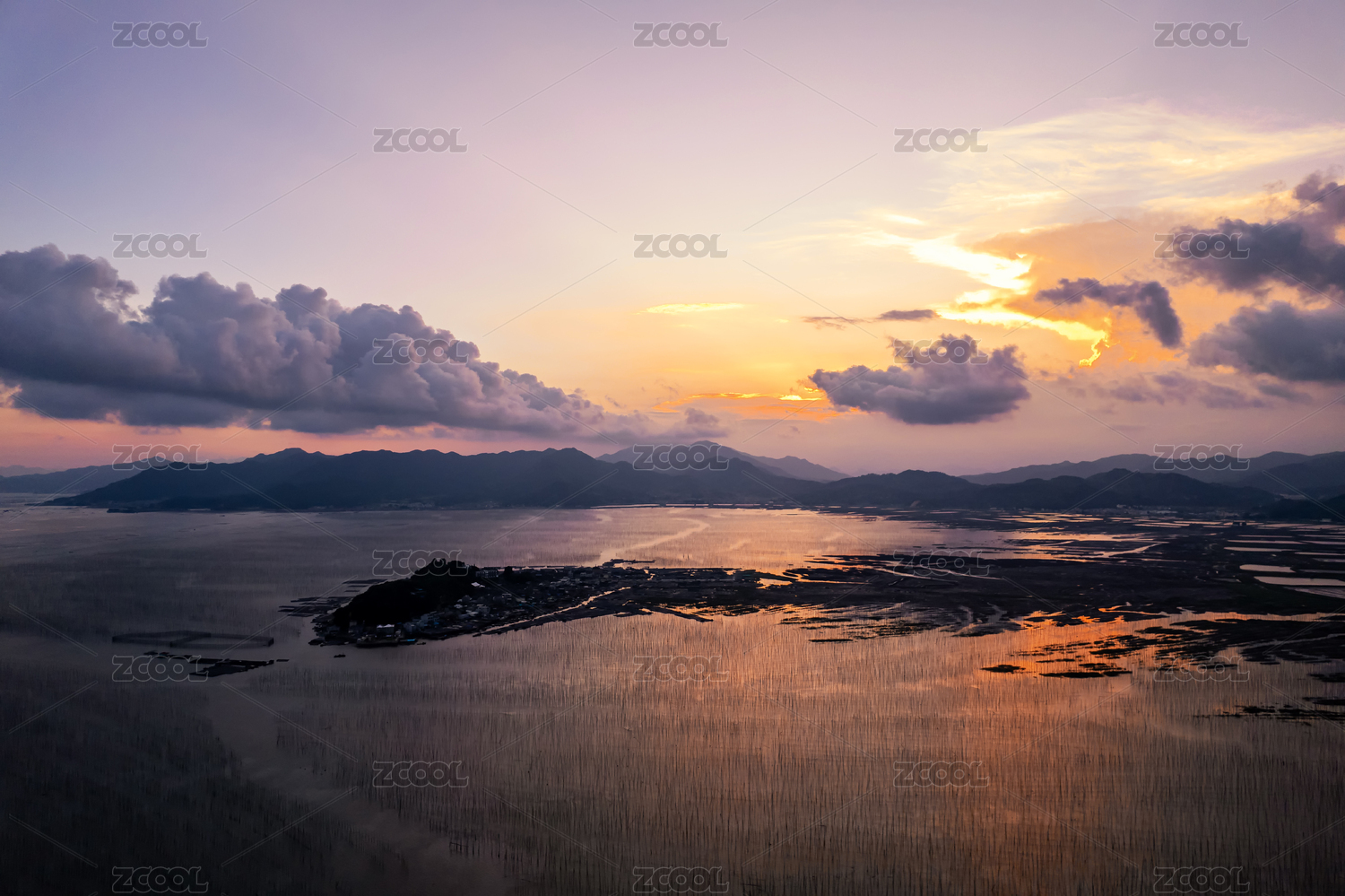 海上日落晚霞的福建霞浦沿海滩涂自然风光