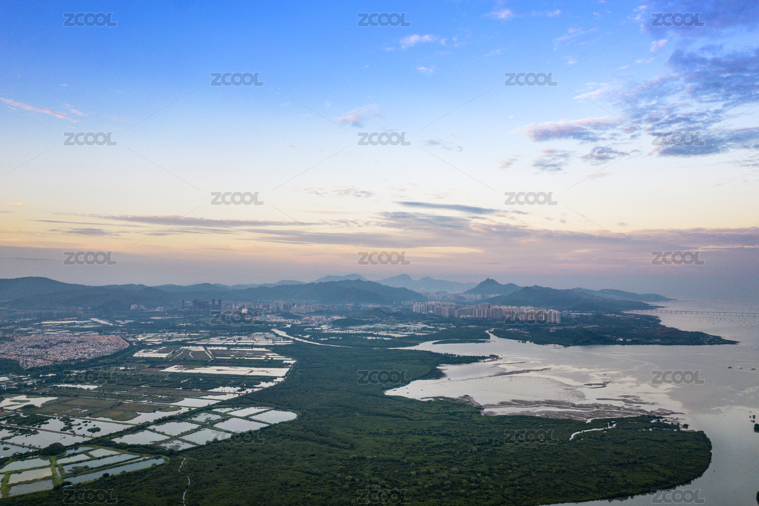 航拍广东深圳湾日落风光 深圳红树林夕阳