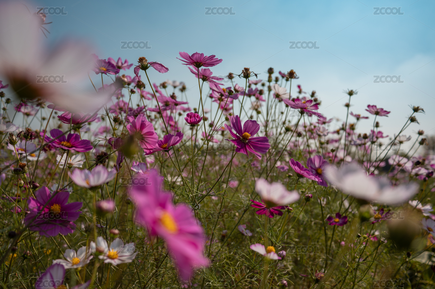 蓝天下的波斯菊