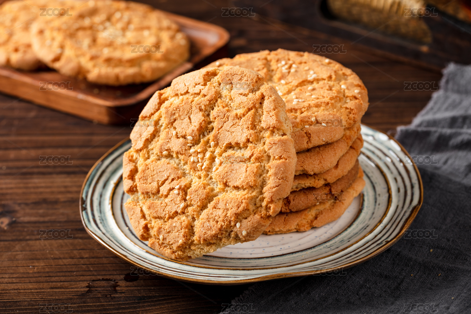 盘子里的传统中式糕点:芝麻核桃酥