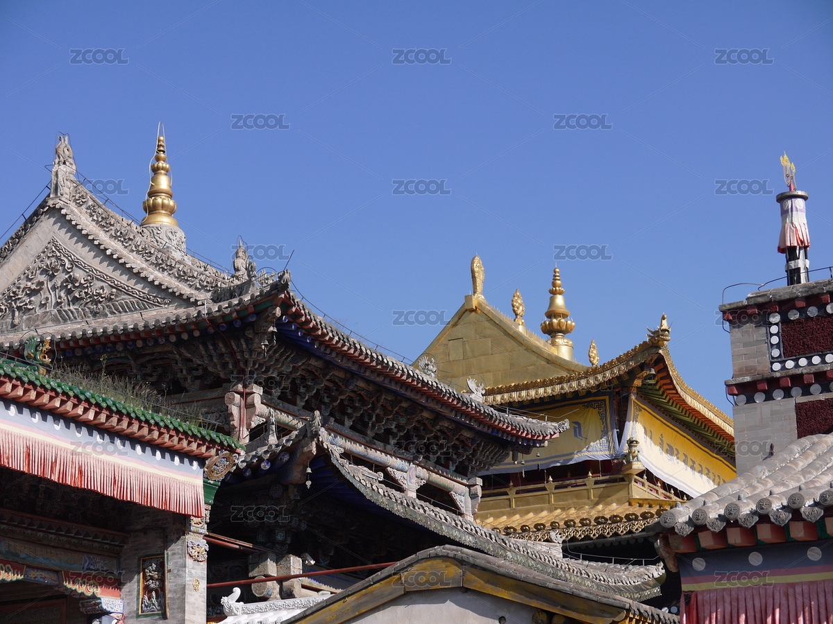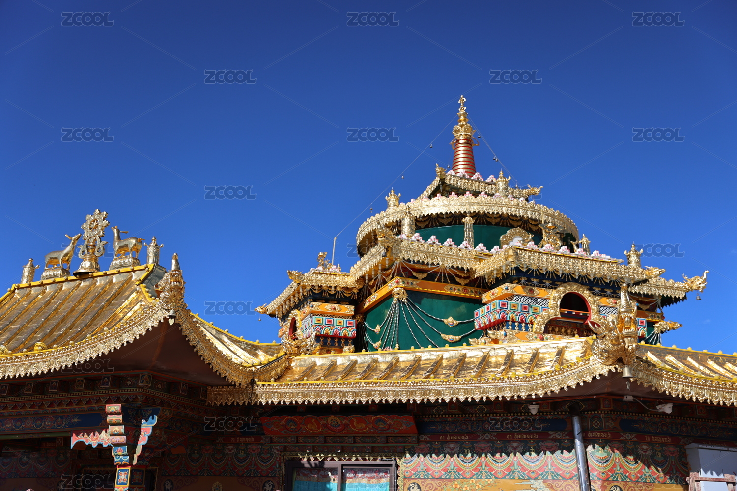 四川阿坝州松潘川主寺寺庙建筑和屋顶