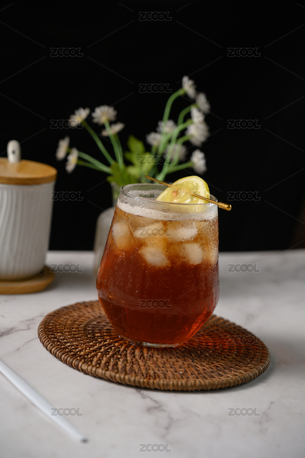 桌面上的杯子里的美味可口的桂花酸梅汤