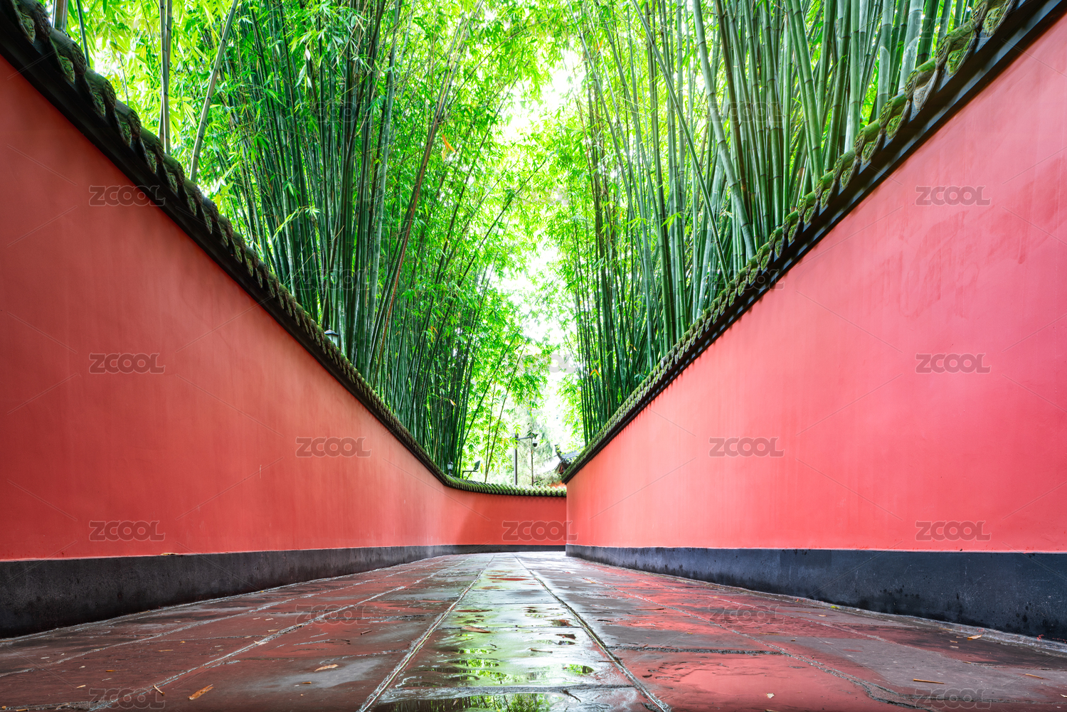 中国四川省成都市武侯祠博物馆的红墙和竹林