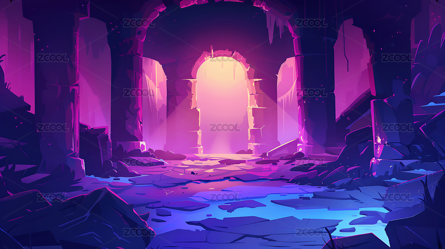背景,素材,壁纸,紫色,光,山洞,洞穴,岩石,碎石,通道