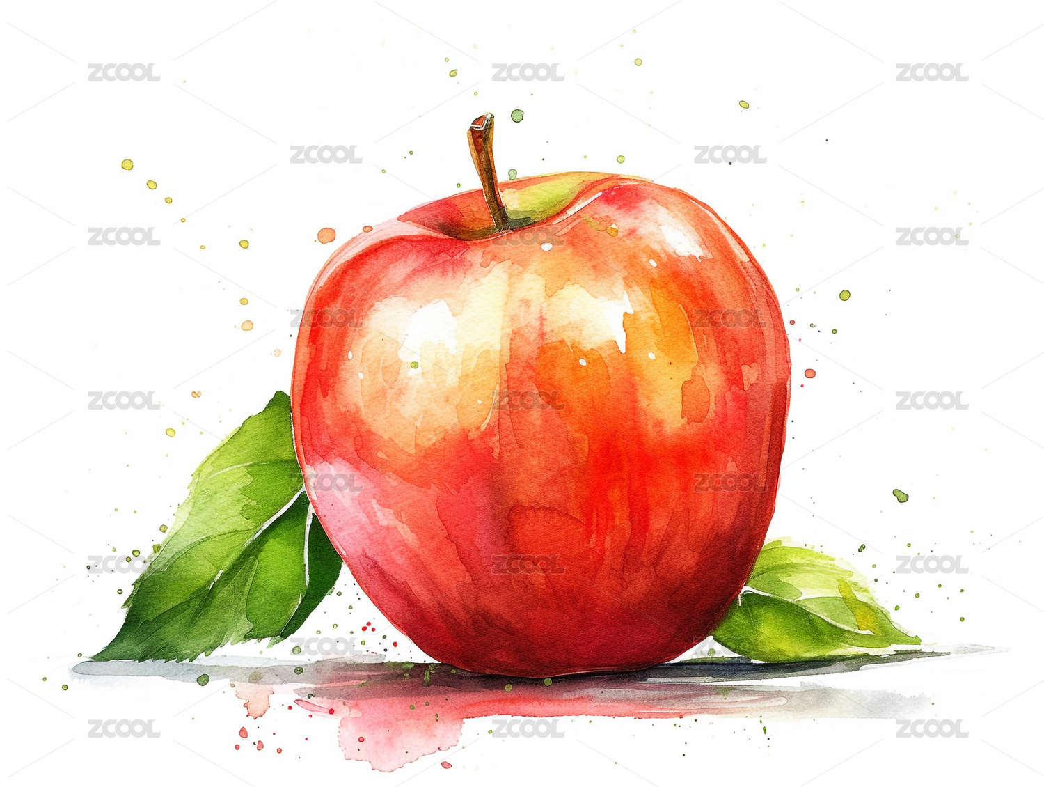 数码科技水彩苹果插画