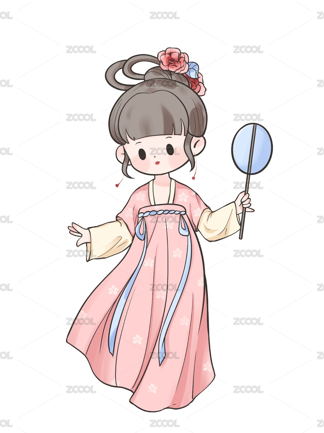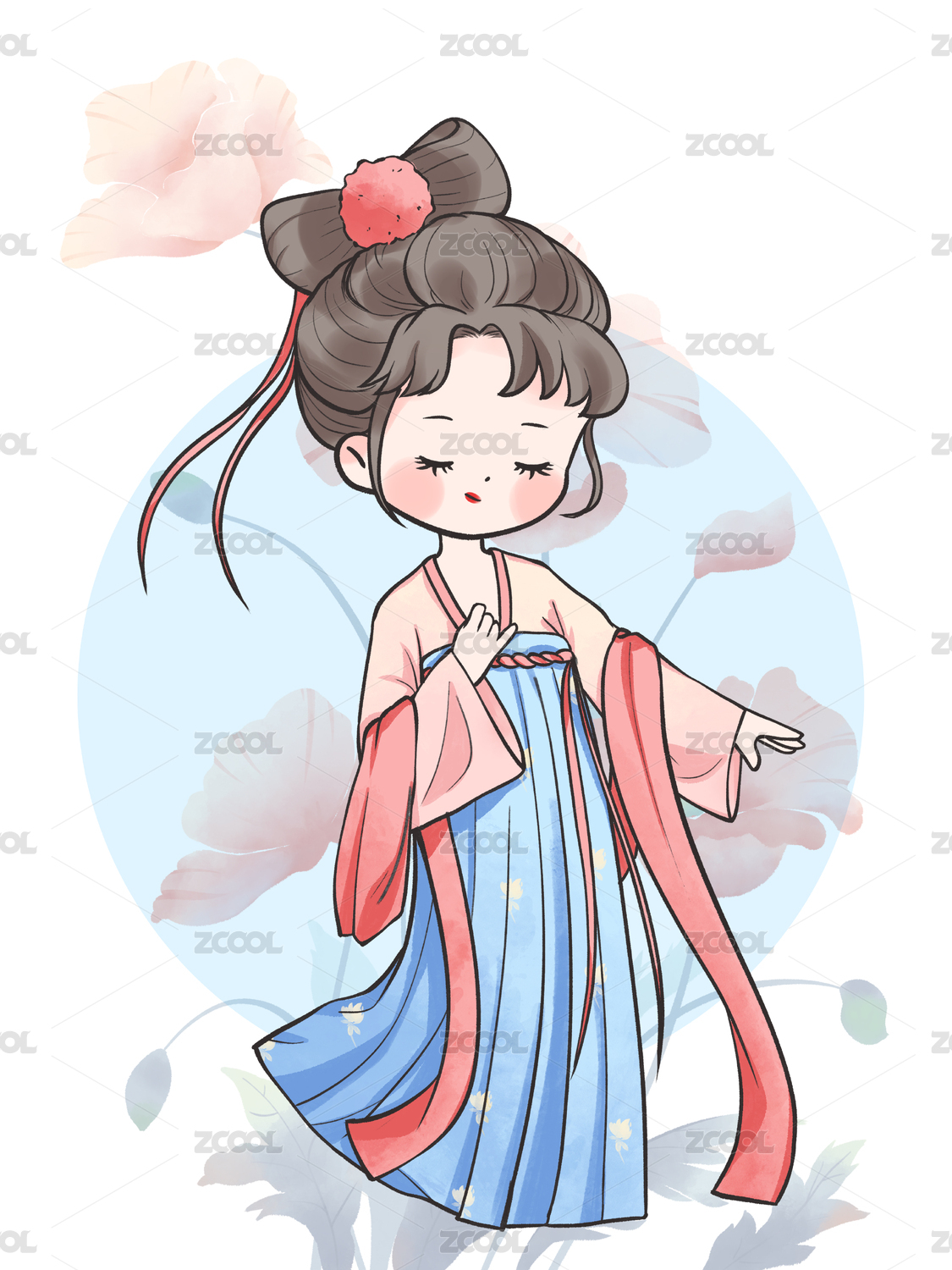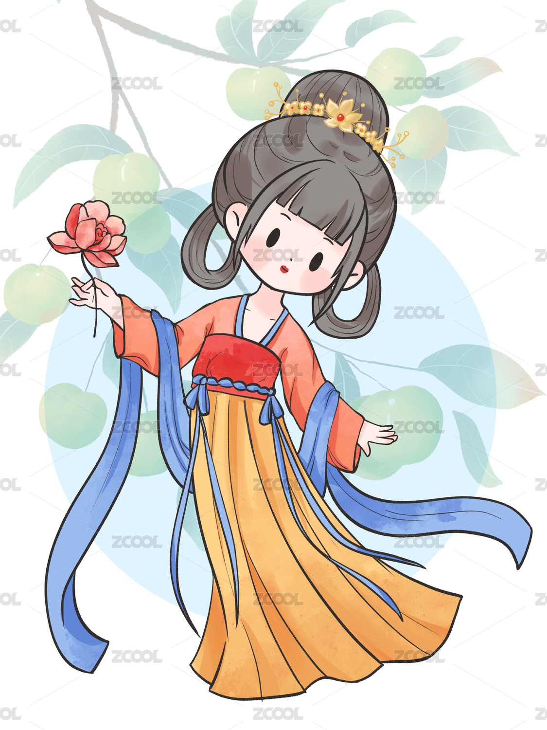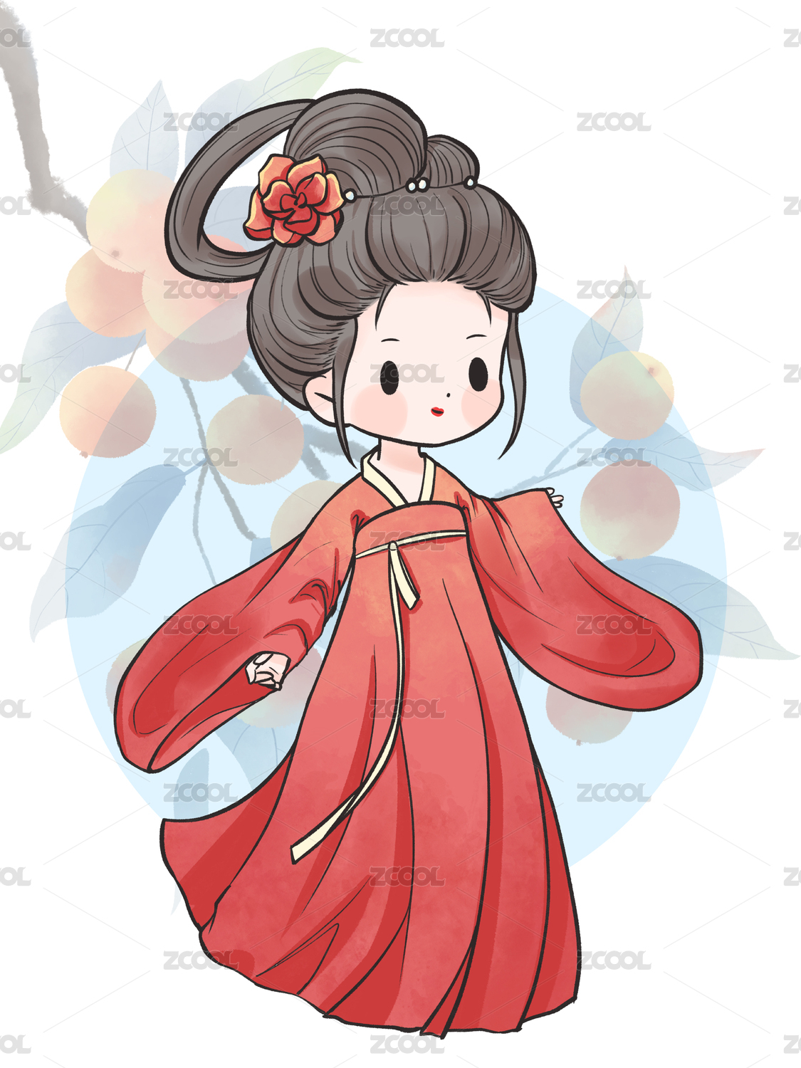 国风手绘Q版古装汉服女孩