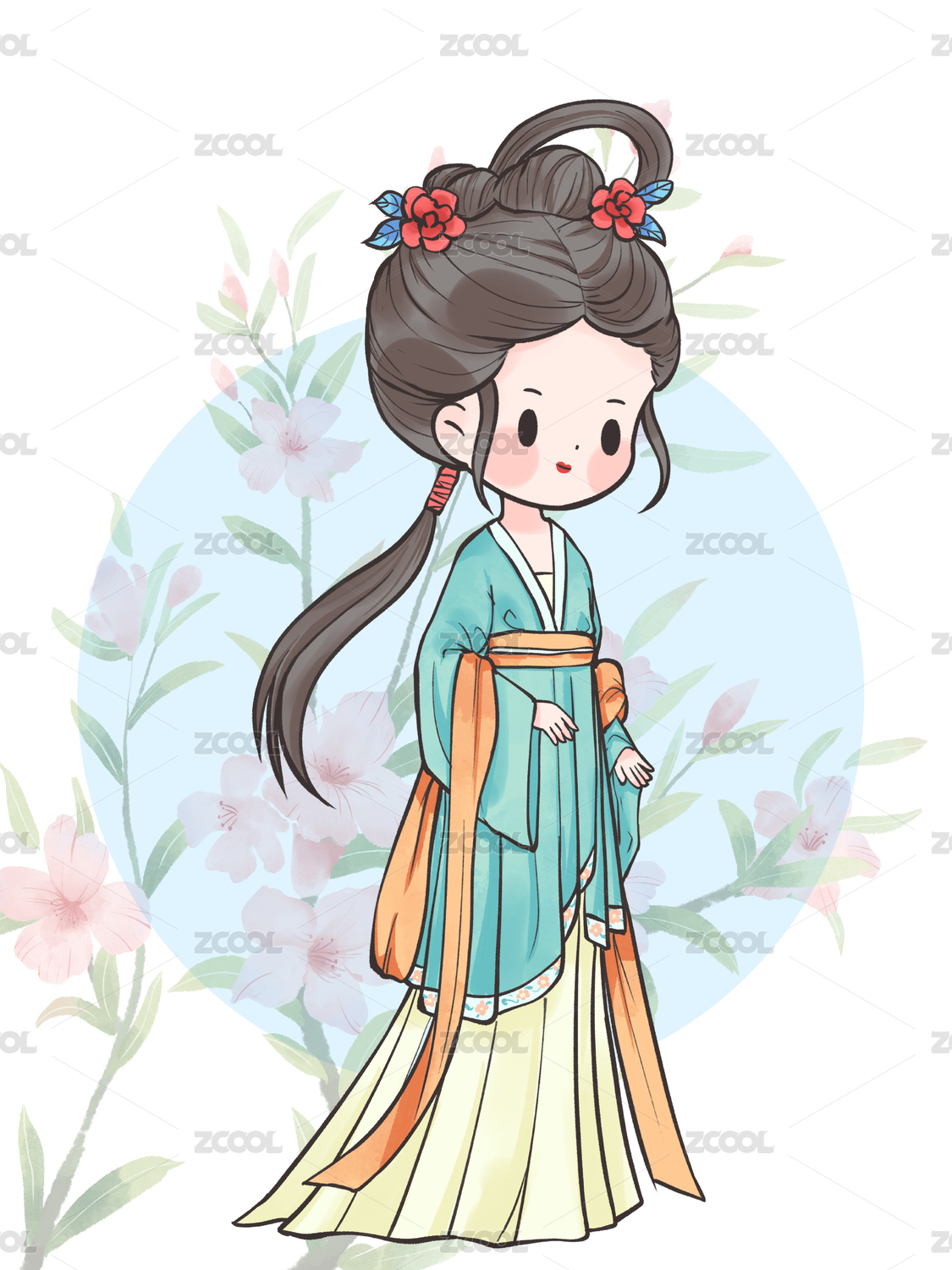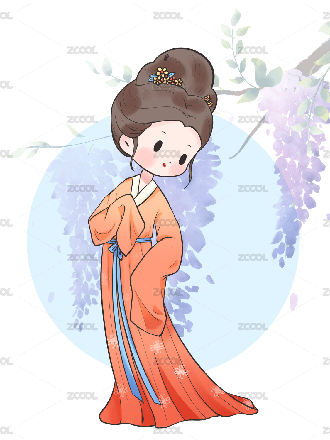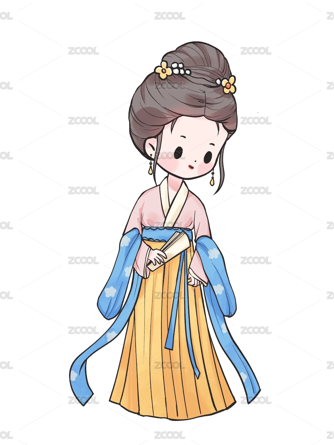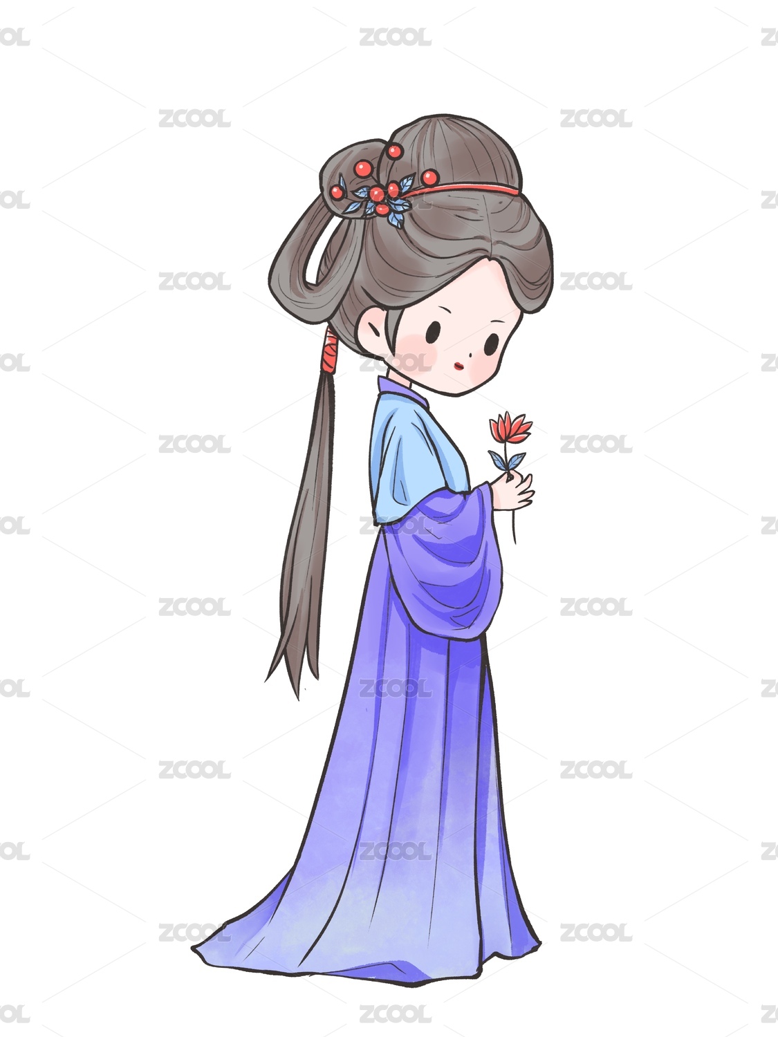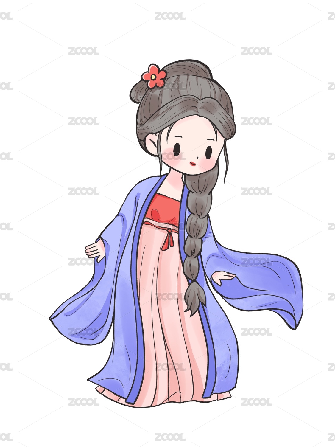 国风手绘Q版古装汉服女孩