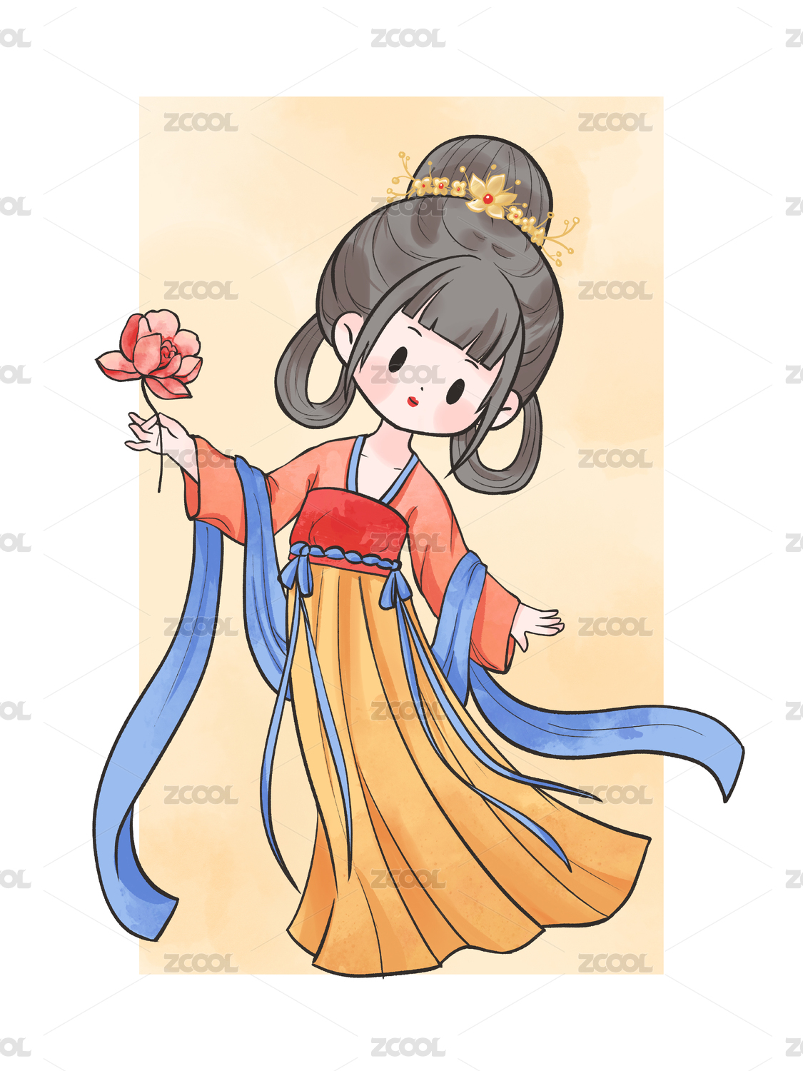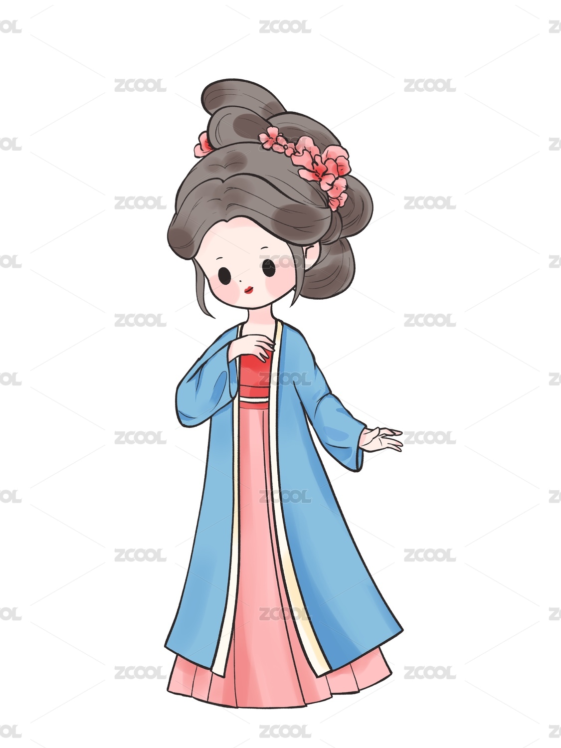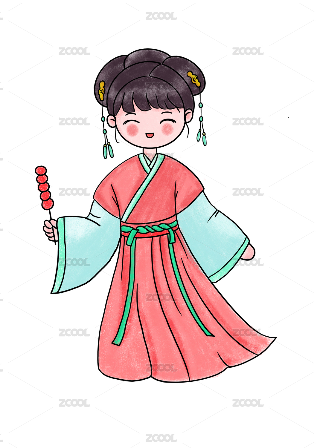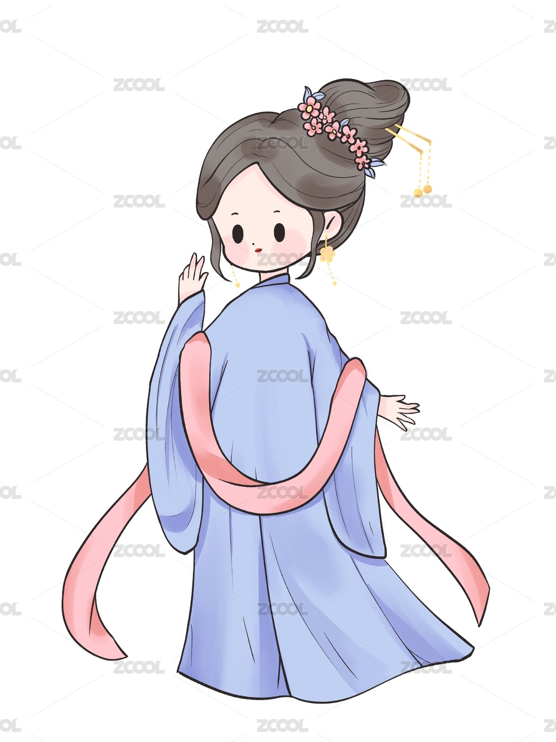 国风手绘Q版古装汉服女孩