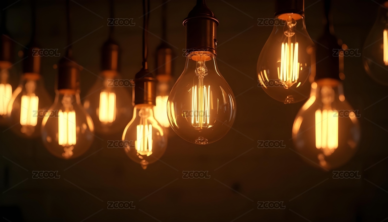 复古风格灯泡特写温暖怀旧的灯光氛围