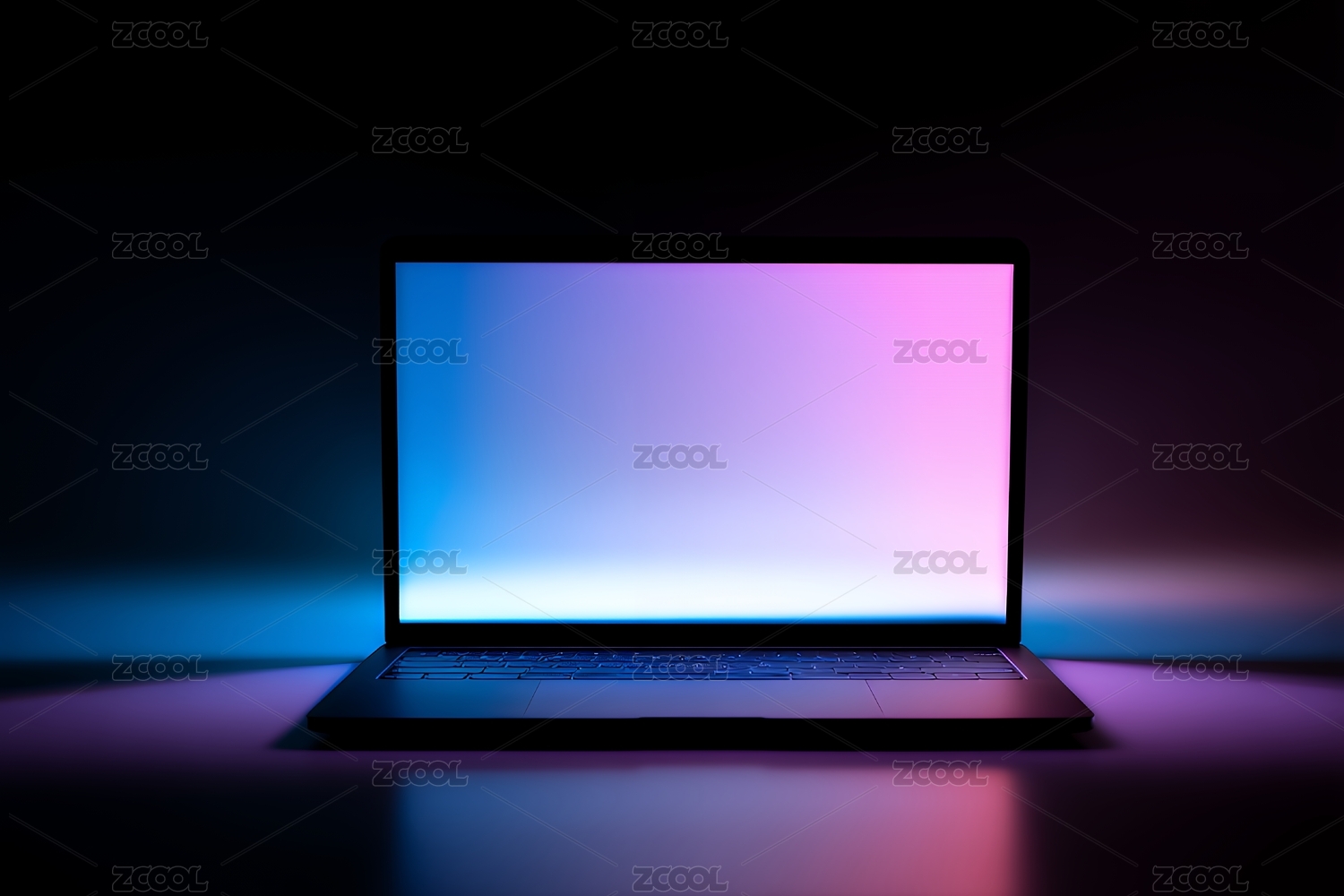 绿屏,屏幕,绿幕,绿色屏幕,笔记本电脑,电脑,正面,计算机,夜晚,黑暗
