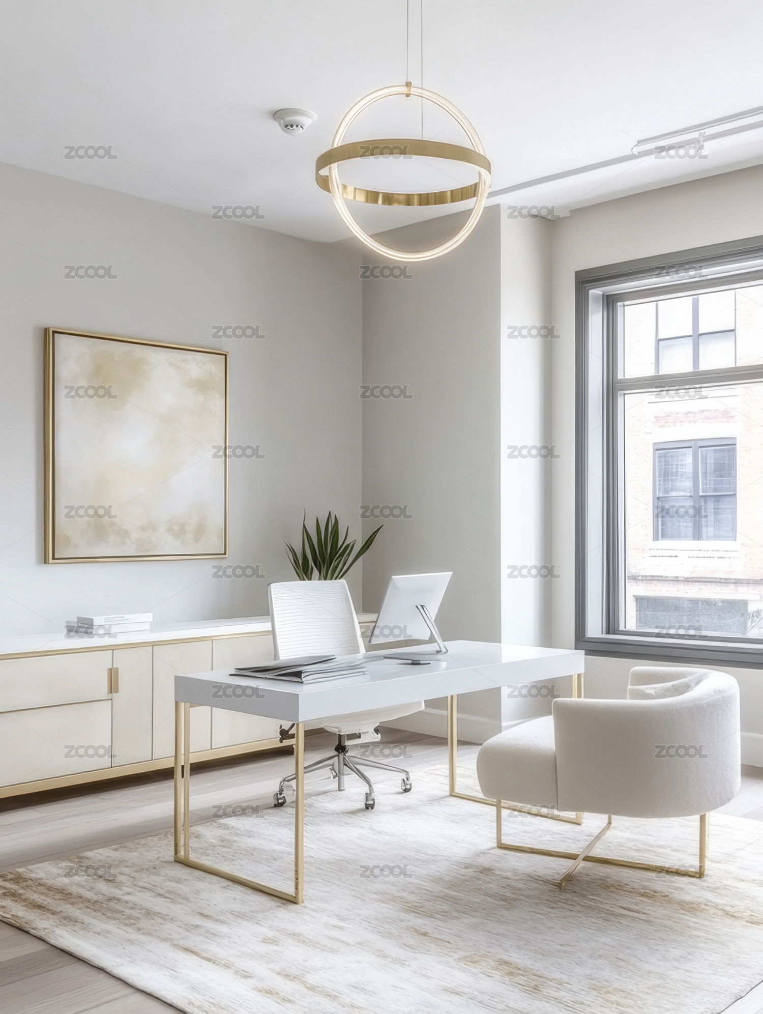 白色,沙发,书桌,设计,室内,装修,现代,简约,极简,工作室