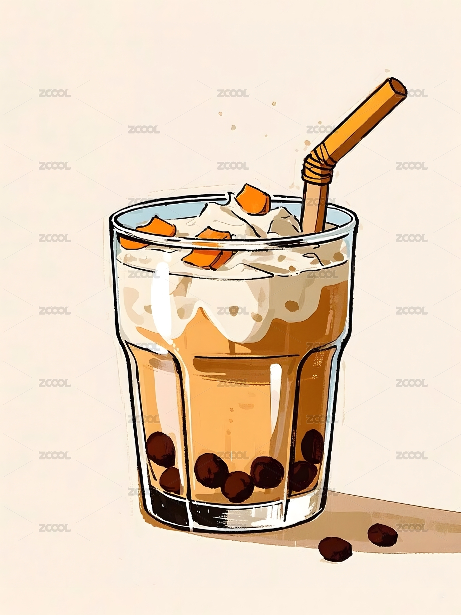 手绘卡通奶茶插画设计
