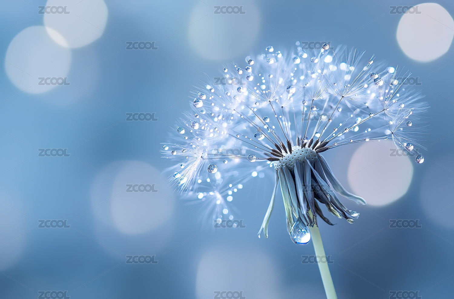 蓝色背景下蒲公英