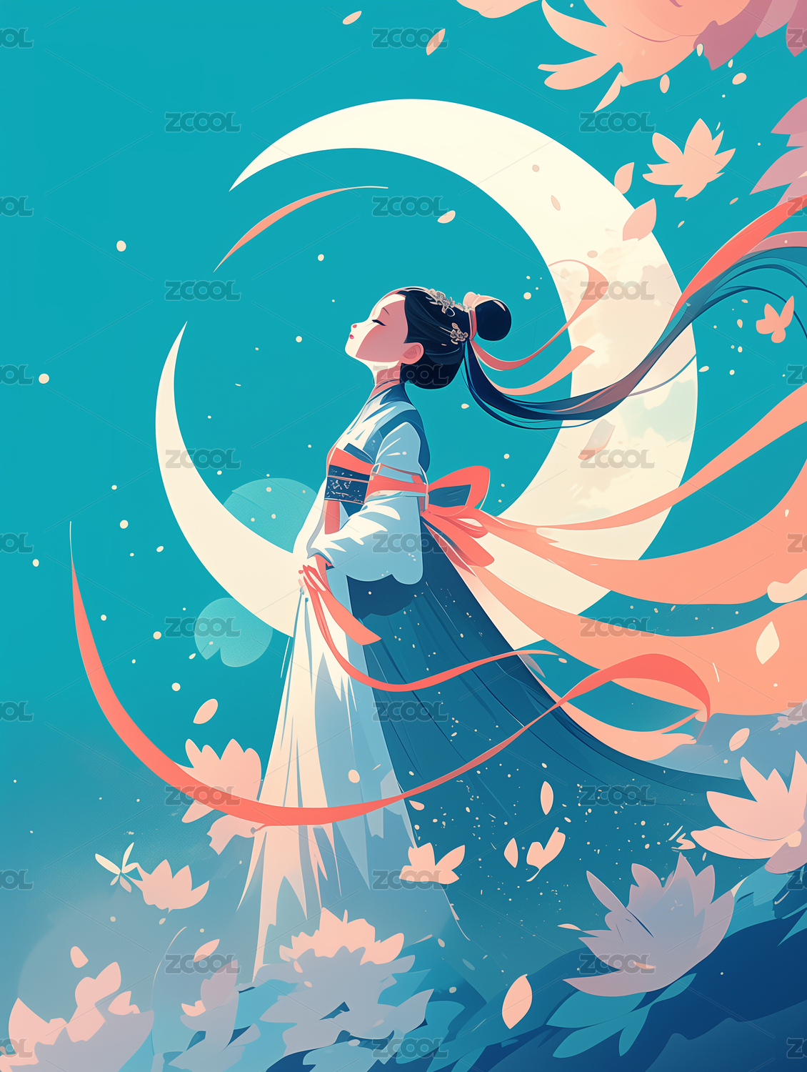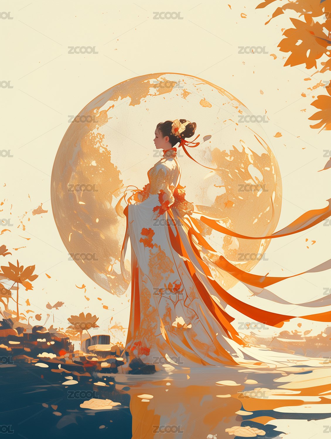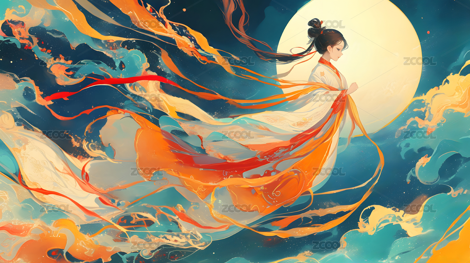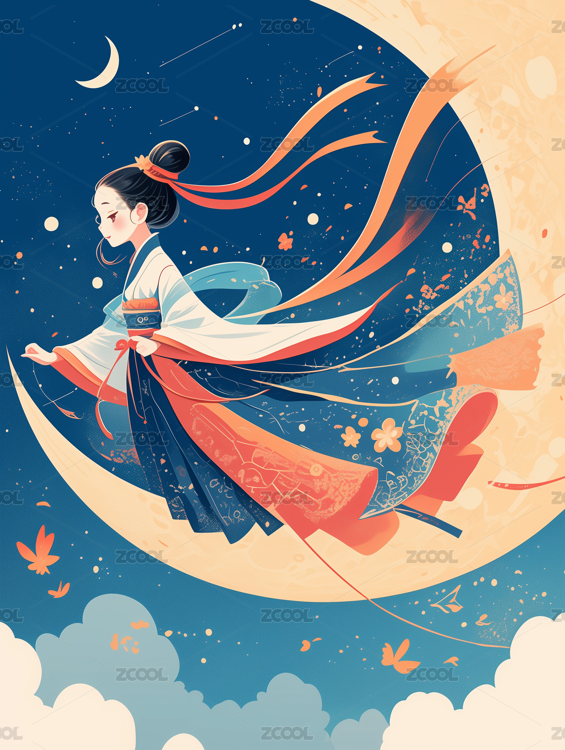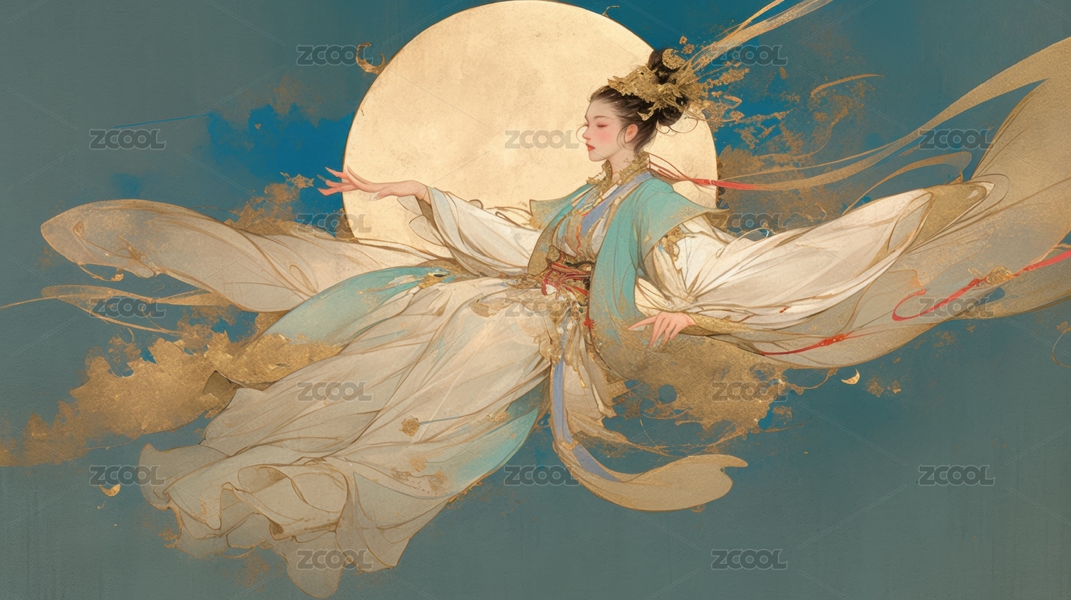 AIGC202403,月亮,中秋,中秋节,嫦娥,仙女,美女,嫦娥奔月,神话,月饼
