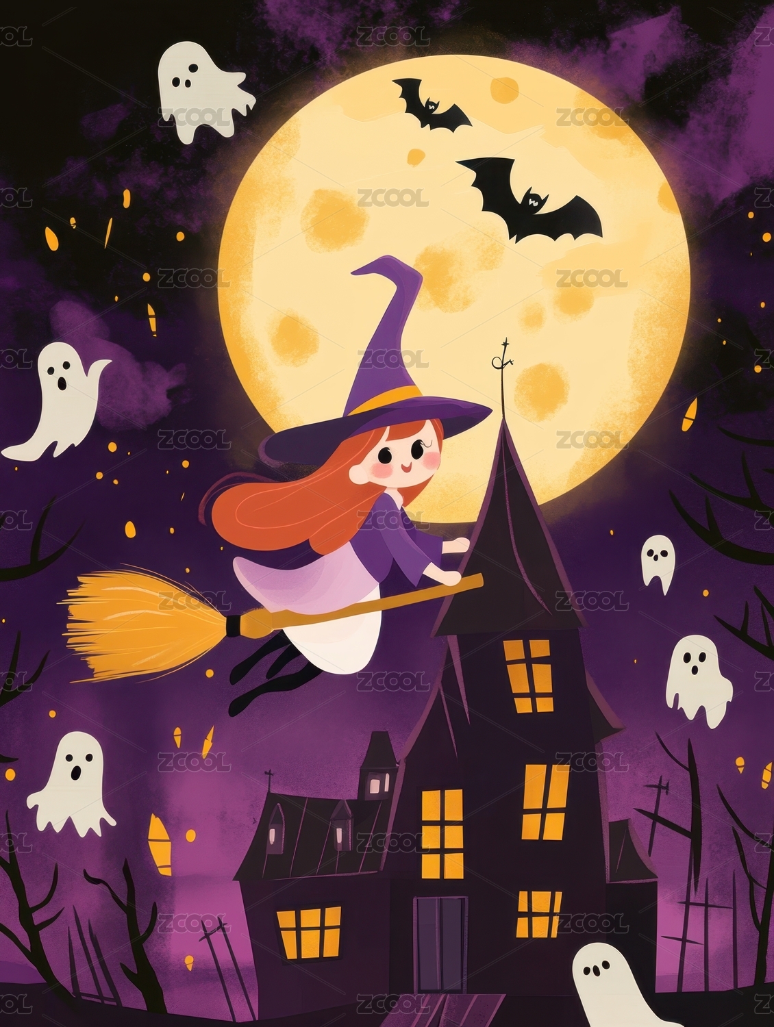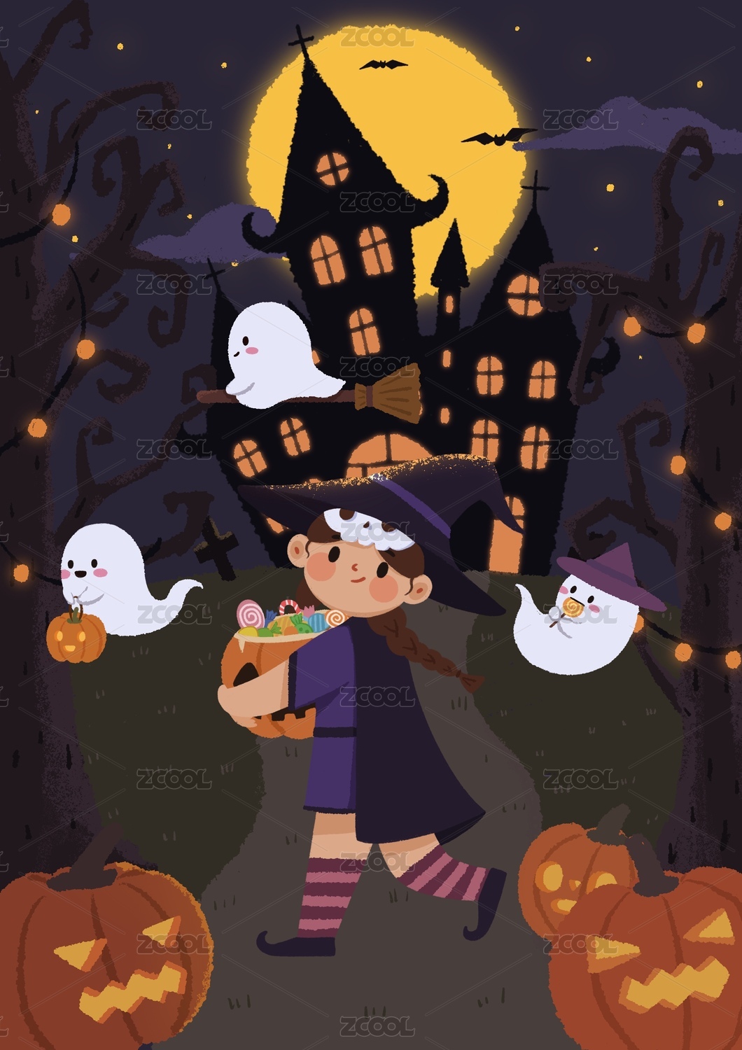 万圣节,节气,女巫,南瓜灯,鬼魂,蝙蝠,枯树,城堡,扫帚,糖果