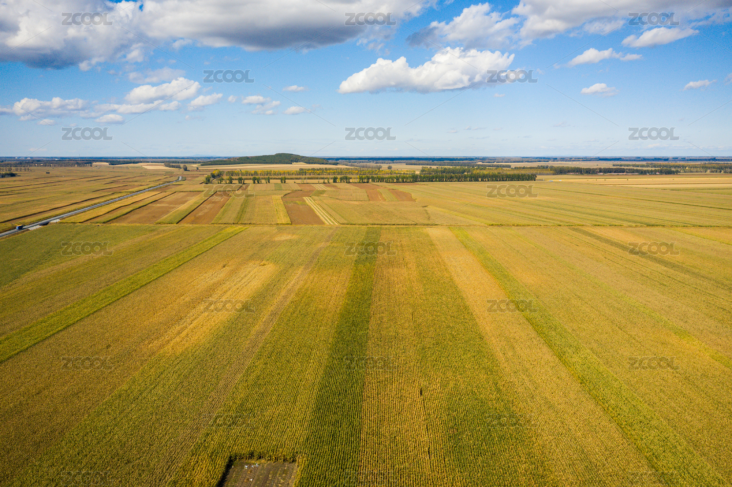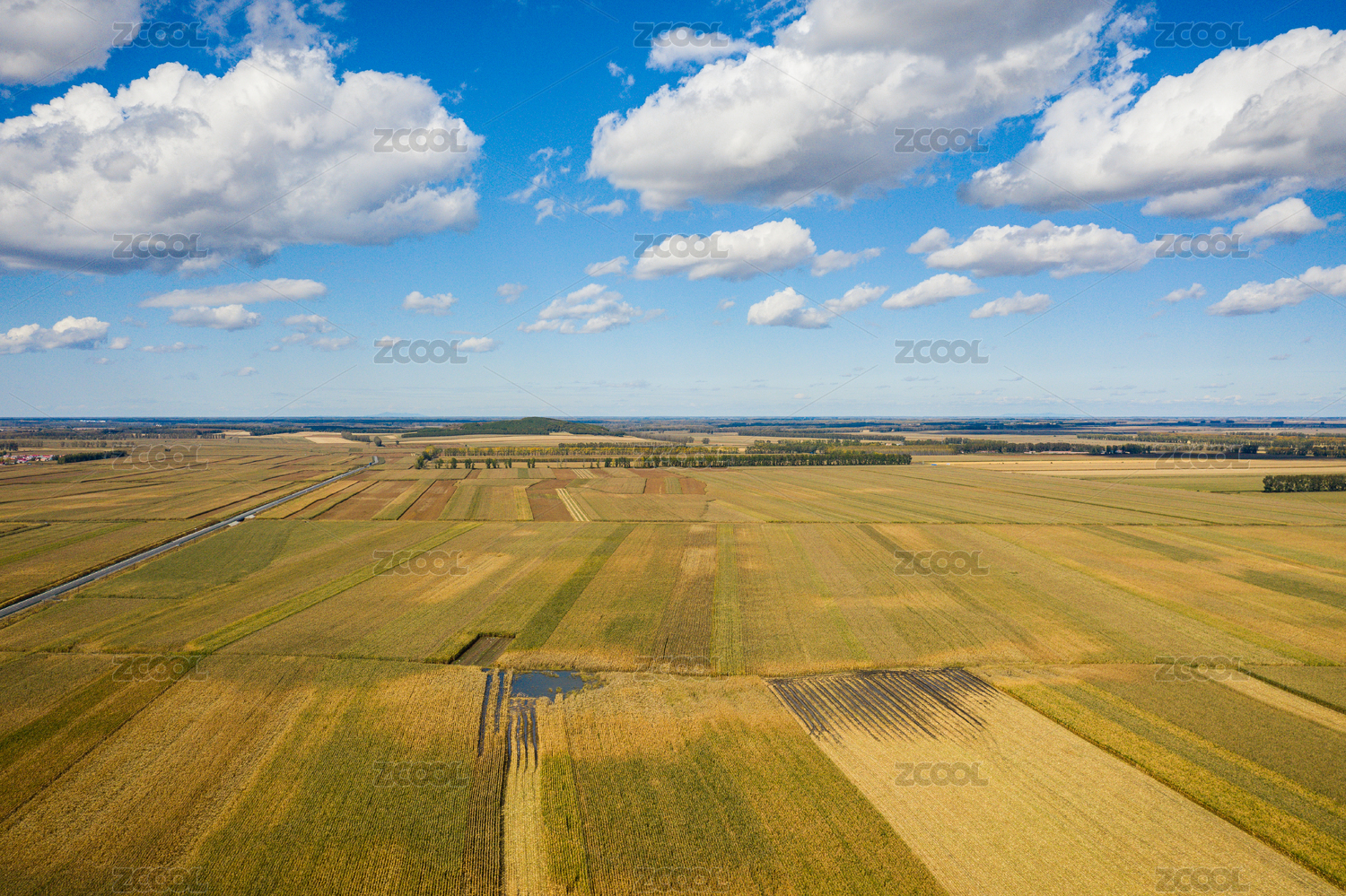 黑龙江佳木斯市户外金秋田野上的丰收景象