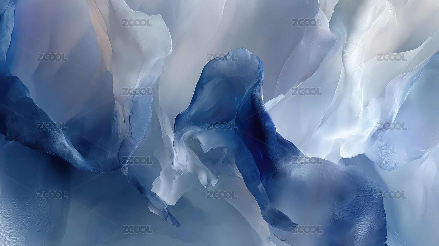 抽象的蓝白色褶皱艺术品如水墨渲染