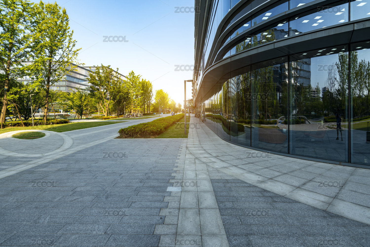 现代建筑和空旷的人行道