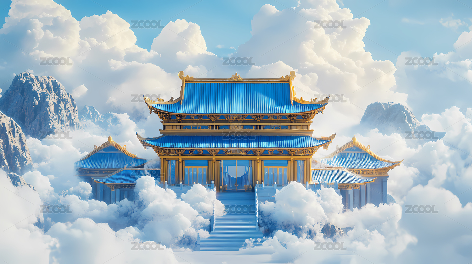 神话,AIGC202407,插画,云端,云,中式,建筑,宫廷,阁楼,大气