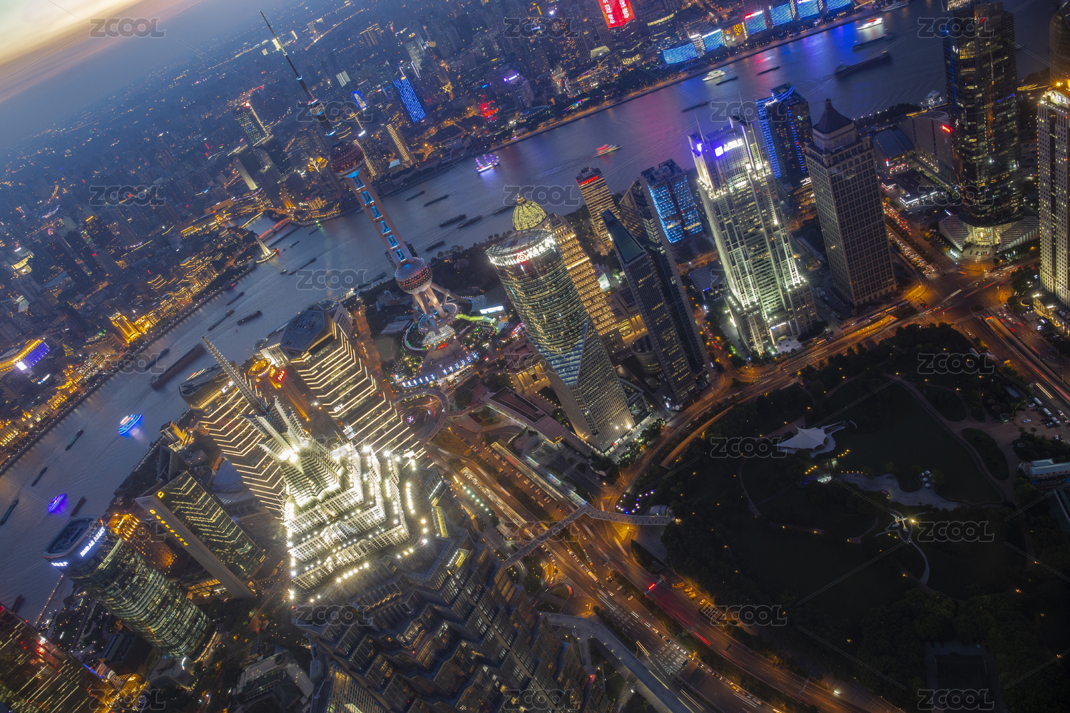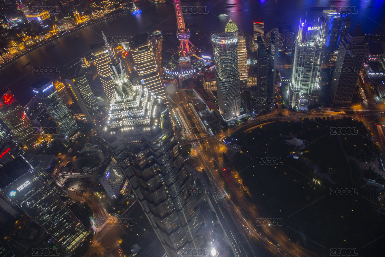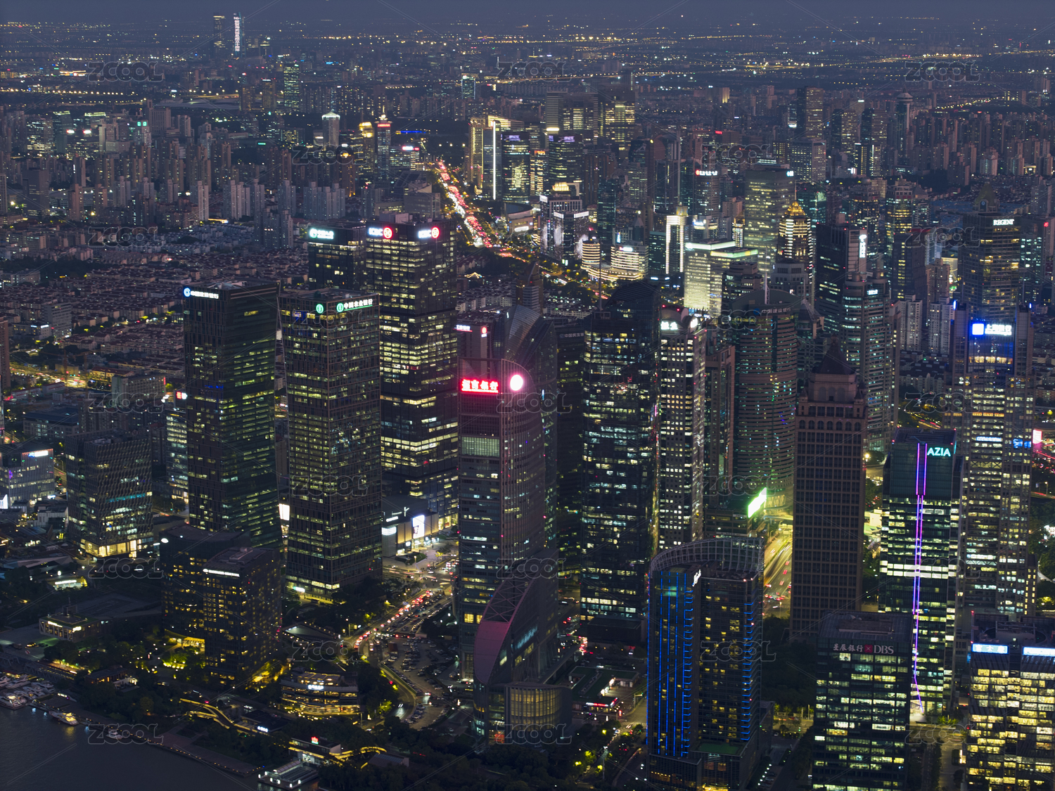 俯瞰航拍中国上海浦东陆家嘴CBD建筑群夜