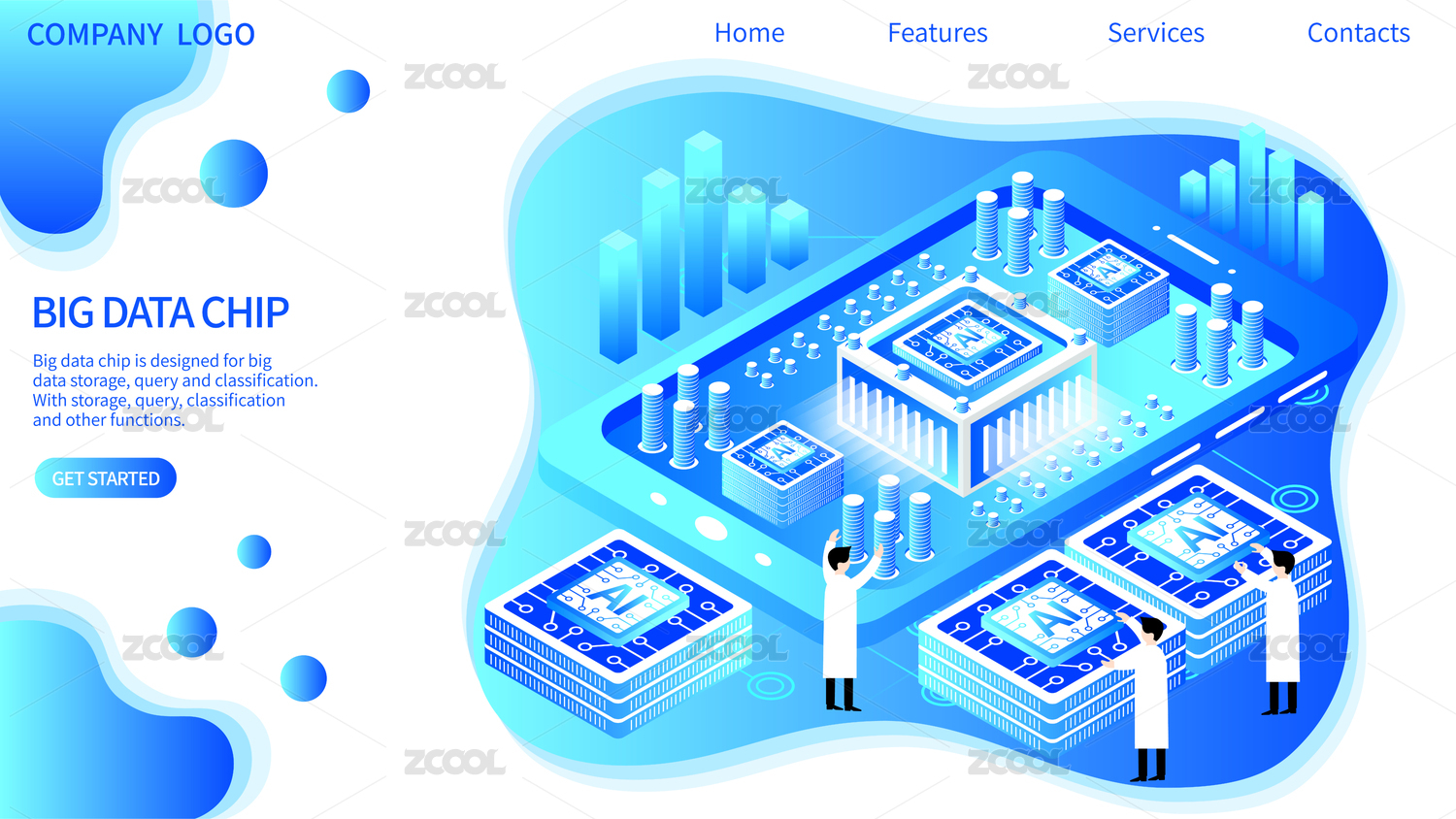 大数据AI芯片自主研发矢量插画