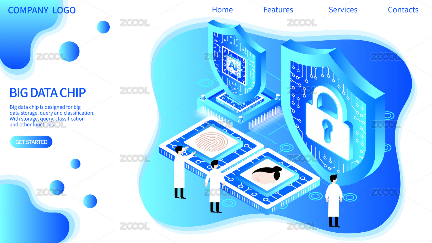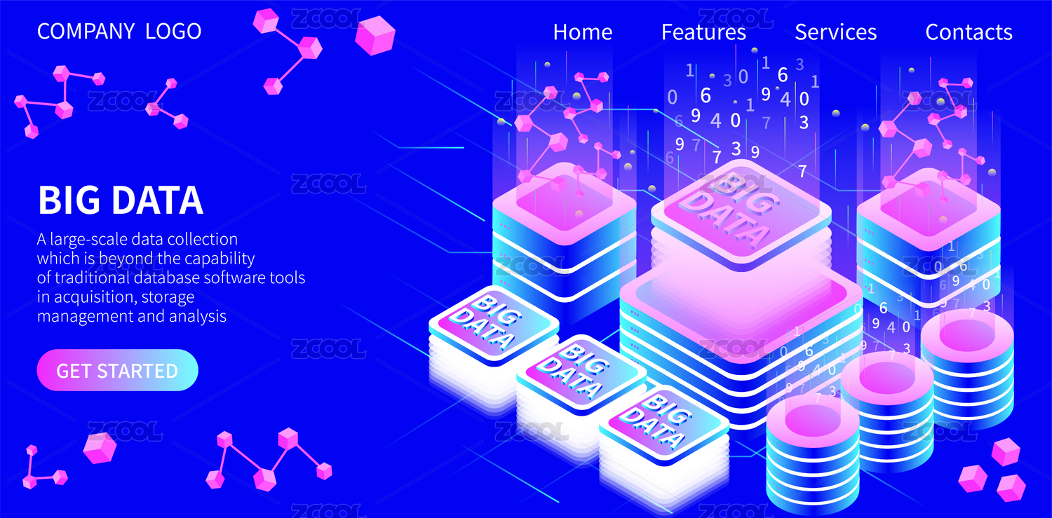 大数据科技未来蓝色矢量插画