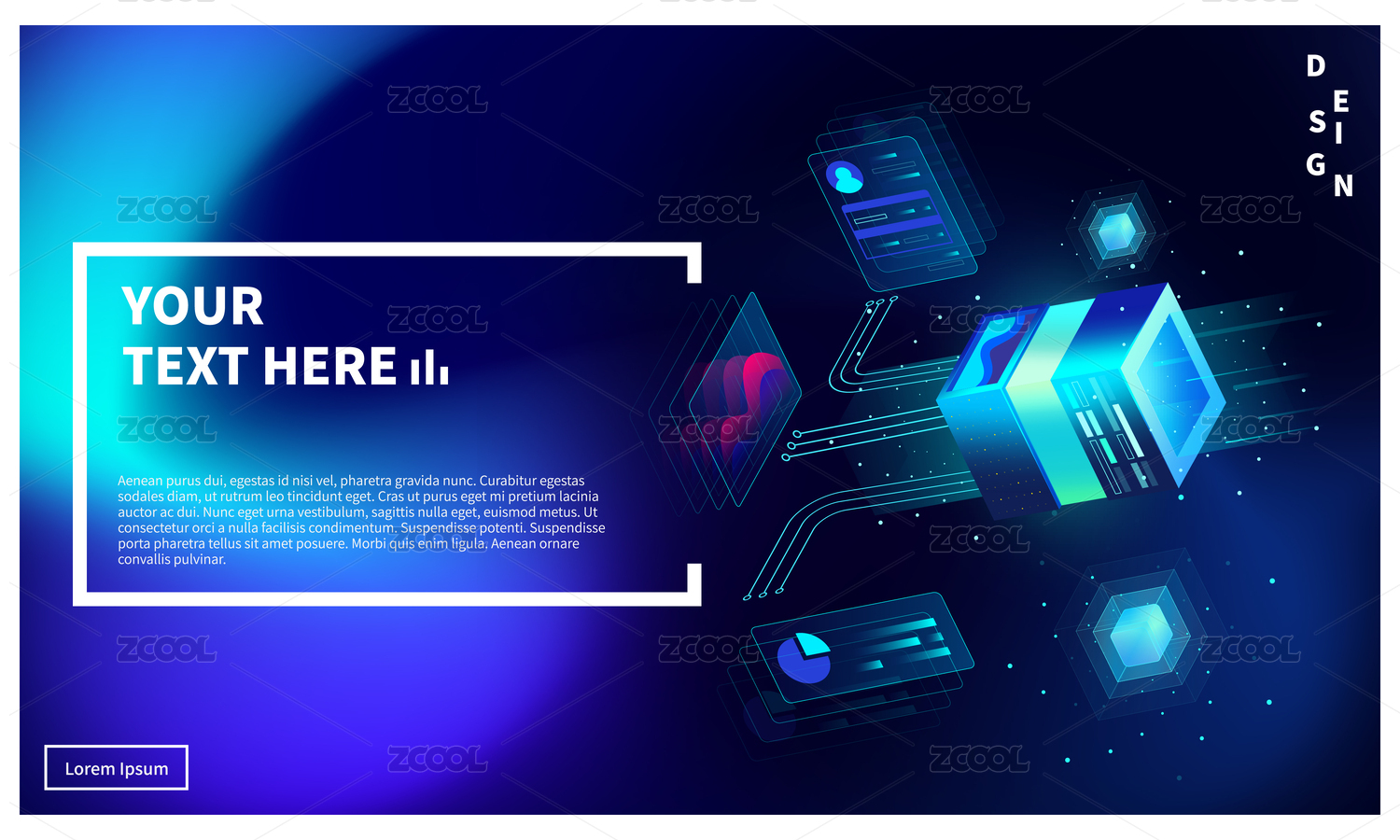 2.5D科技未来数据加密信息安全矢量插画