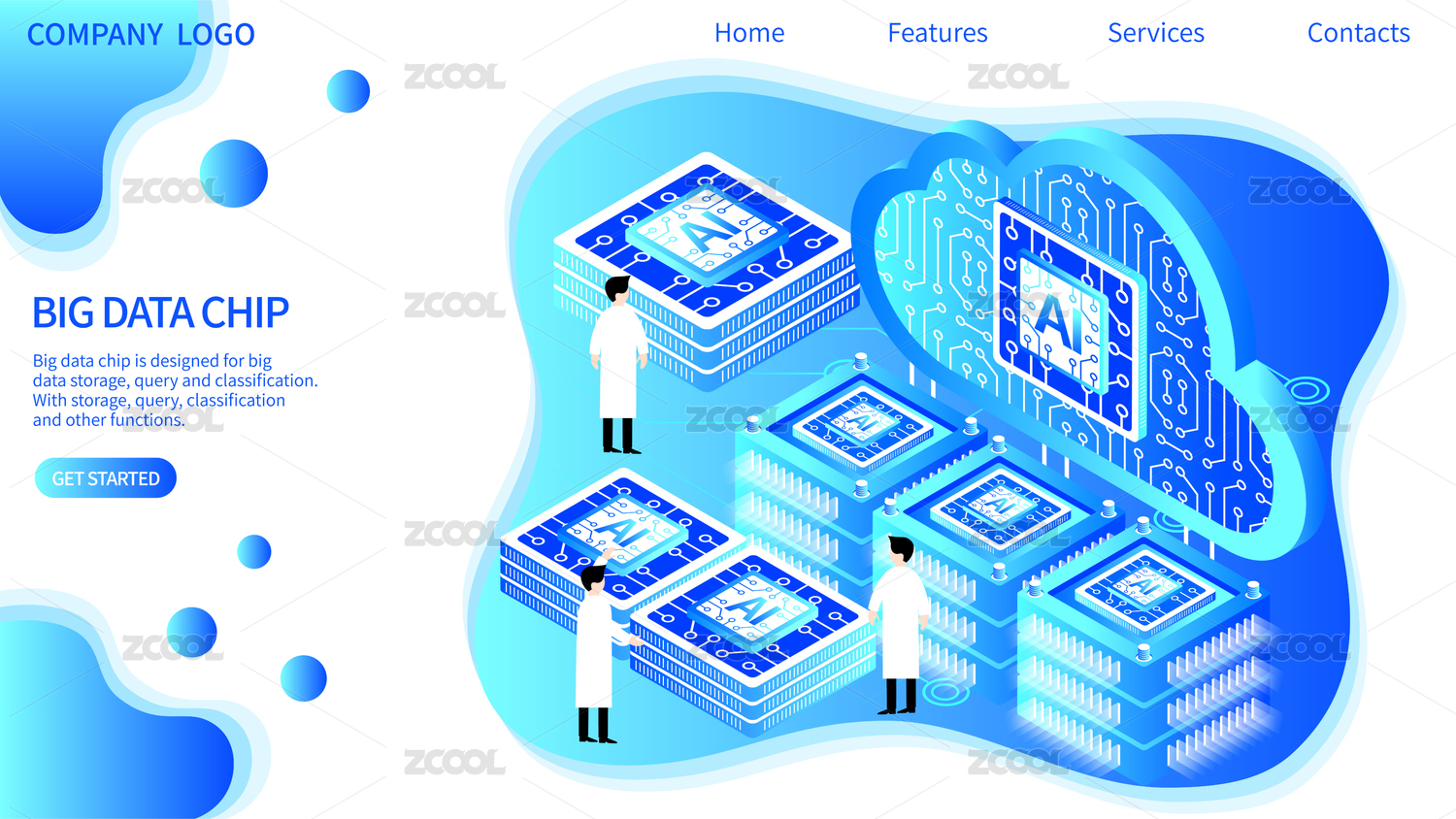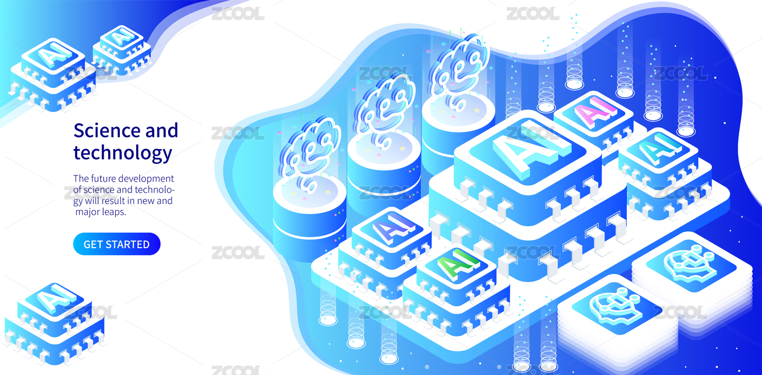 大数据AI云计算科技矢量插画