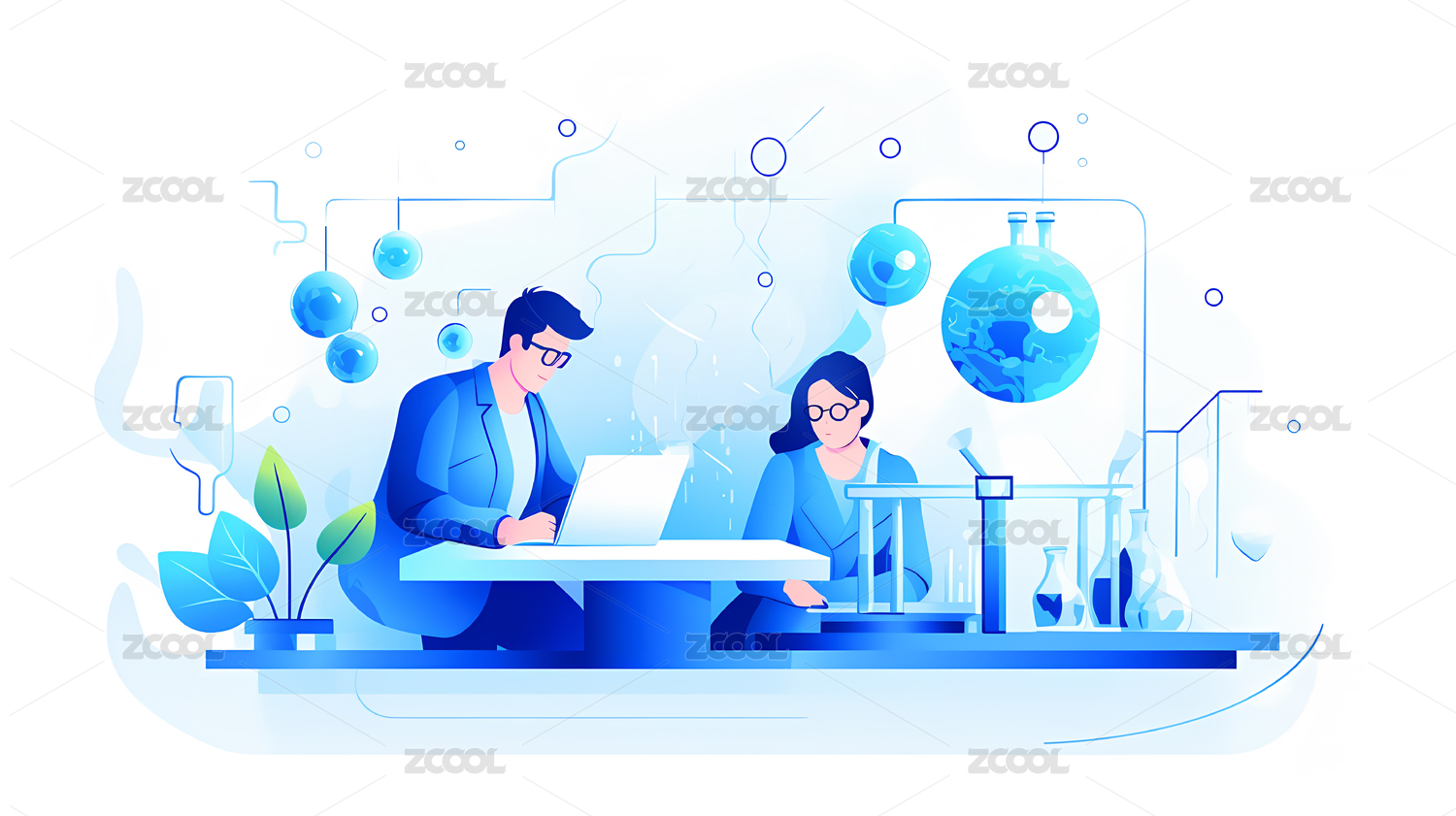 生物化学研究扁平插画
