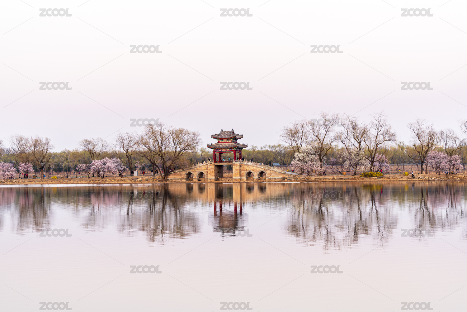 春天颐和园开满桃花的西堤
