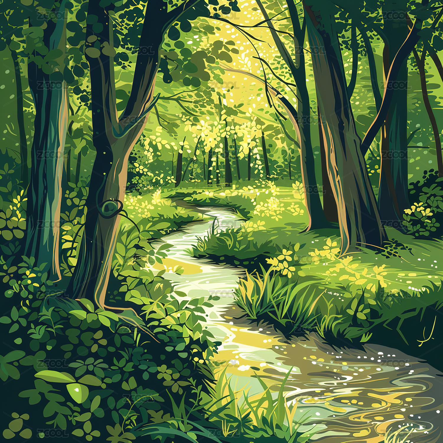 森林,小径,漫步,女孩,树木,绿色,自然,阳光,路径,户外