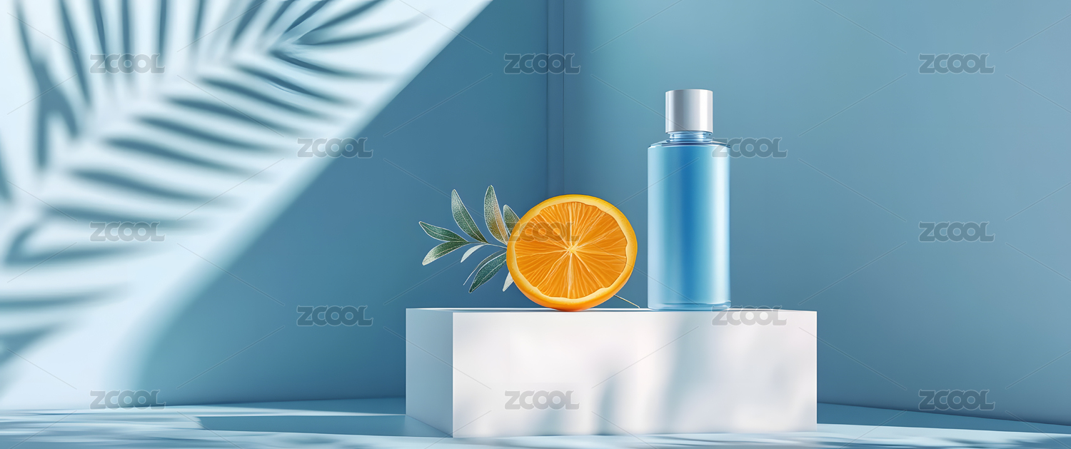 精华液蓝瓶与橙子绿叶的清新组合