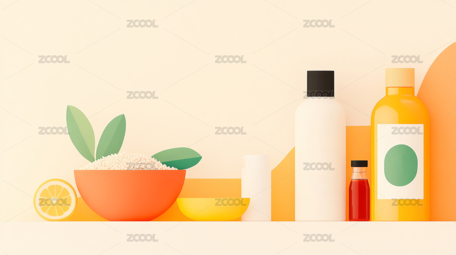 柠檬柑橘与护肤品摆拍 简约清新场景