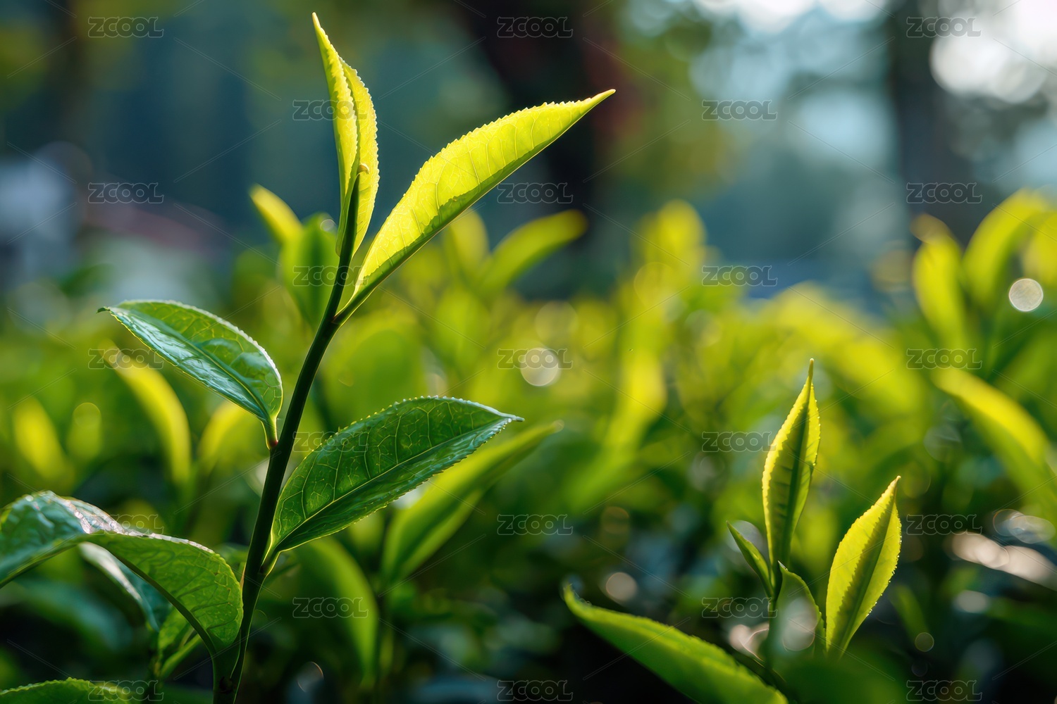 惠州柏塘绿茶茶园清晨时分茶树上的新鲜嫩芽