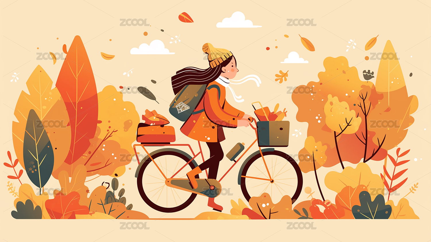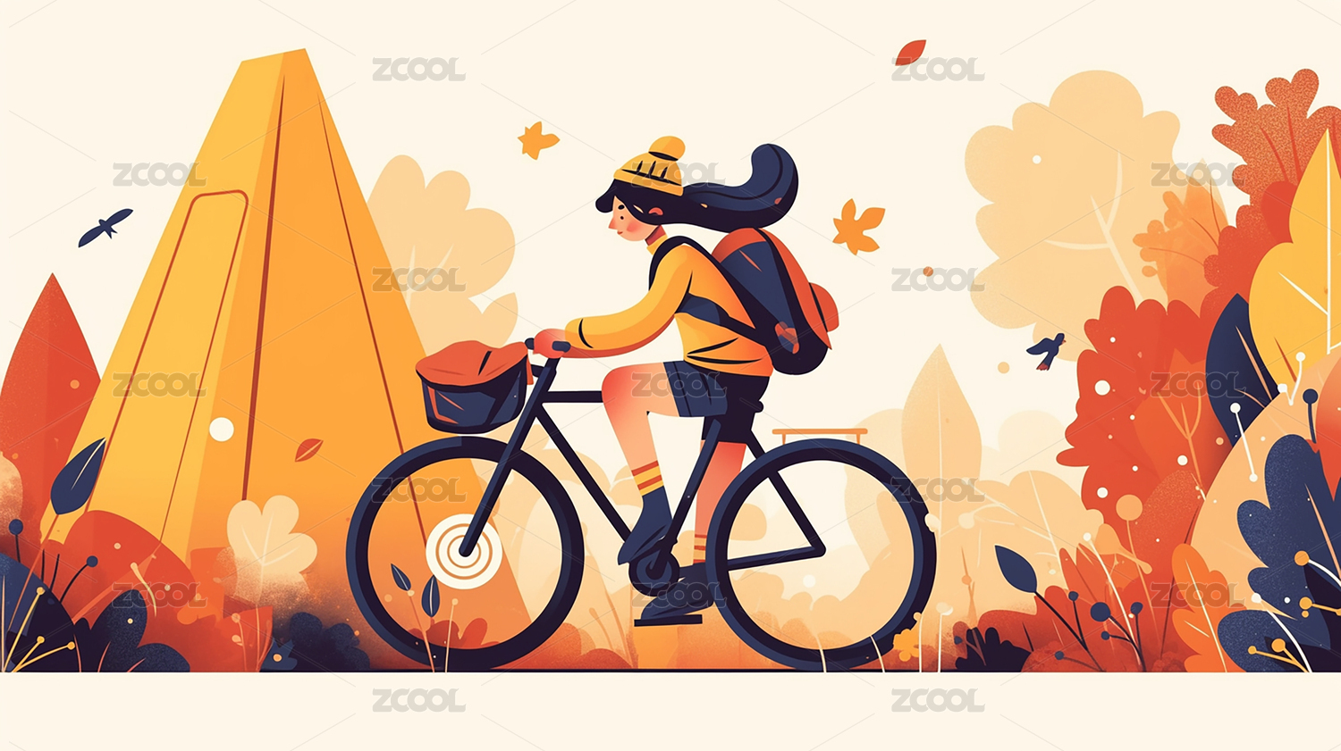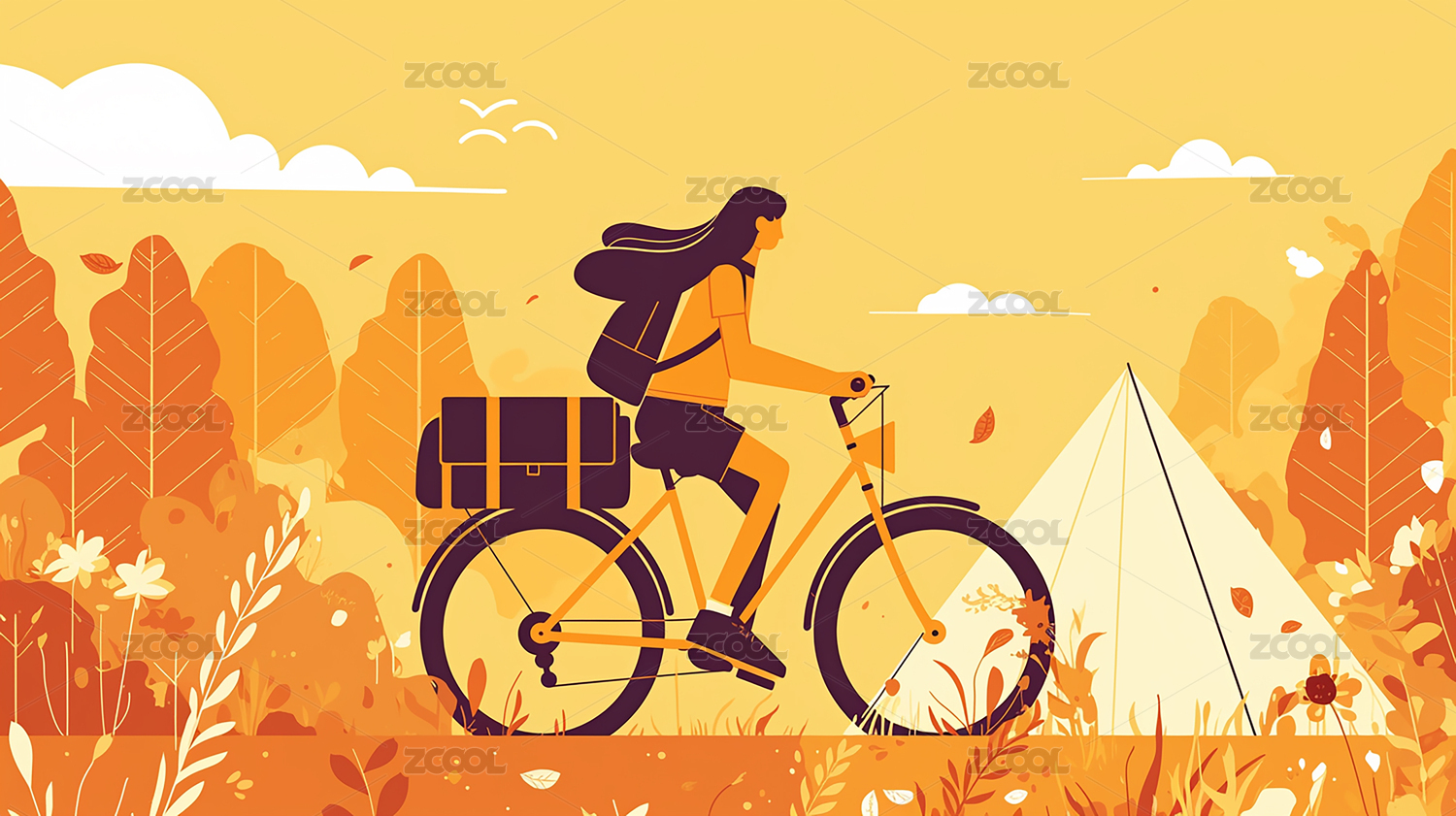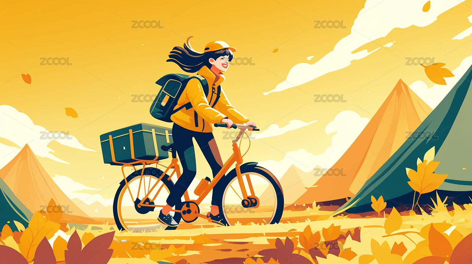 骑行,骑车,自行车,草地,荒野,落叶,枫叶,枫树,松树,帐篷