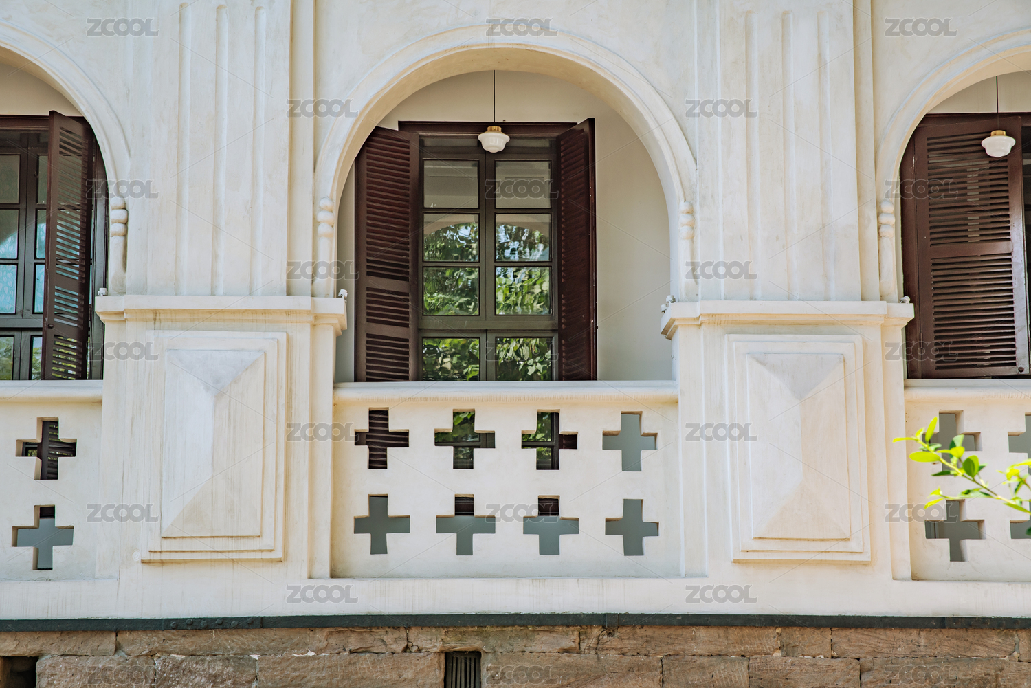 百年历史的广州著名景点沙面欧陆建筑特窗户